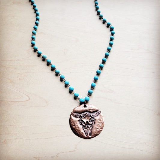 3D Print Picture Necklace on Deerskin Leather Western Bull Skull Desert Cactus Made in America