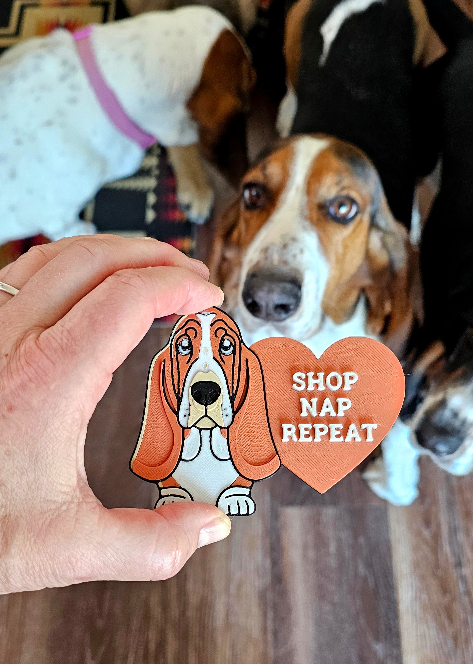 3d Print Basset Hound Cute Funny Shopping Hat Pin or Magnet
