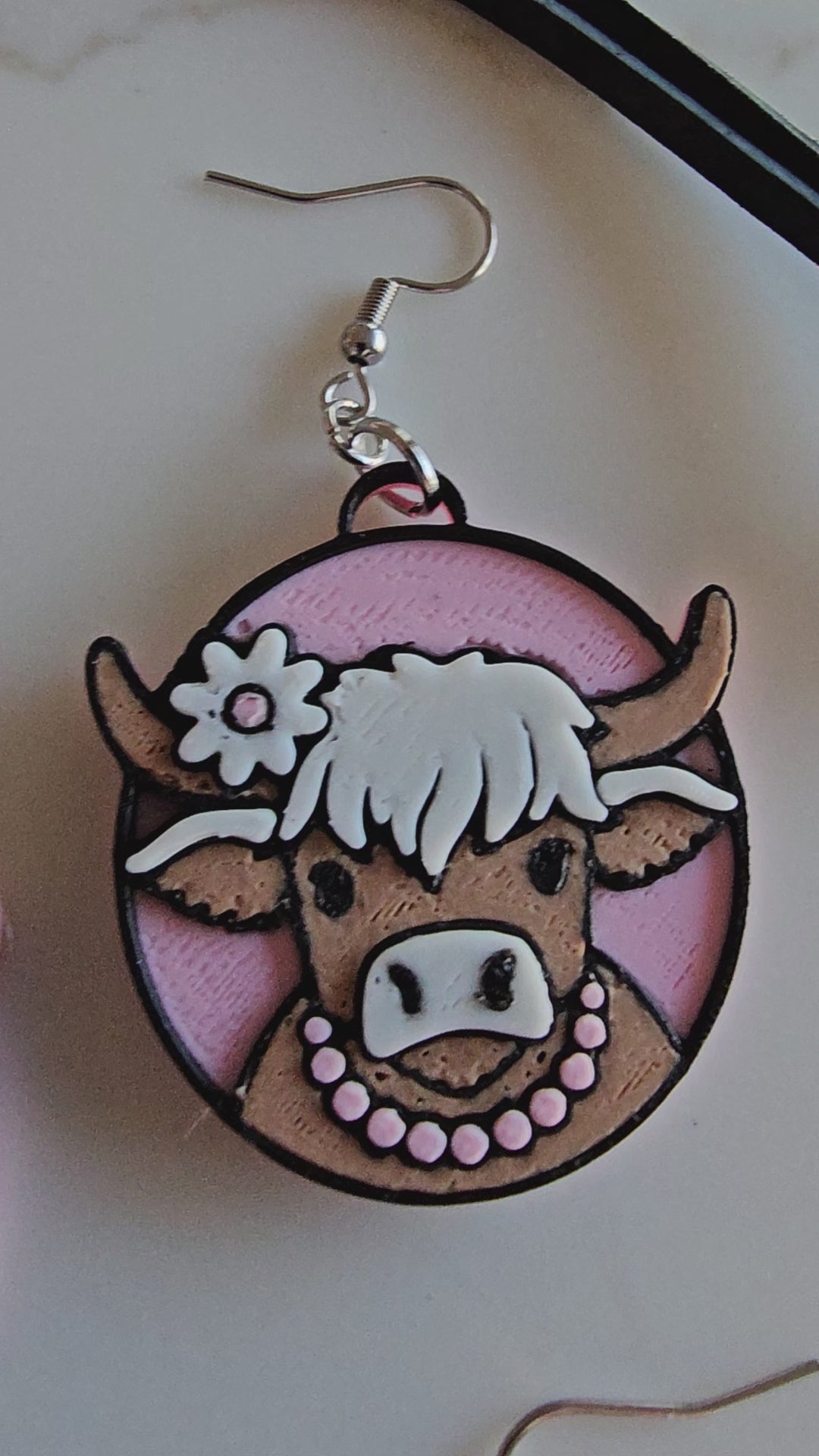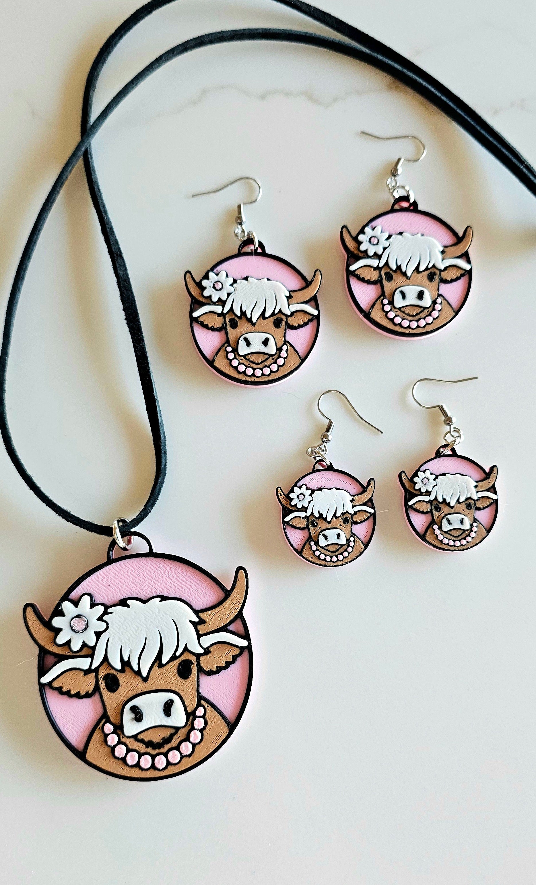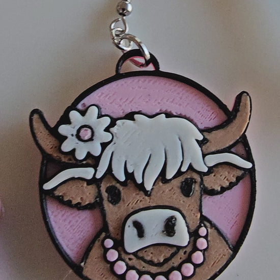 3D Print Cowgirl Highland Cow Picture Necklace or Earrings Western Made in America