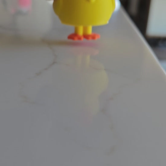 How cute is this little duck! Pick him up and his feet slide out! You can also add a keychain to his backside !