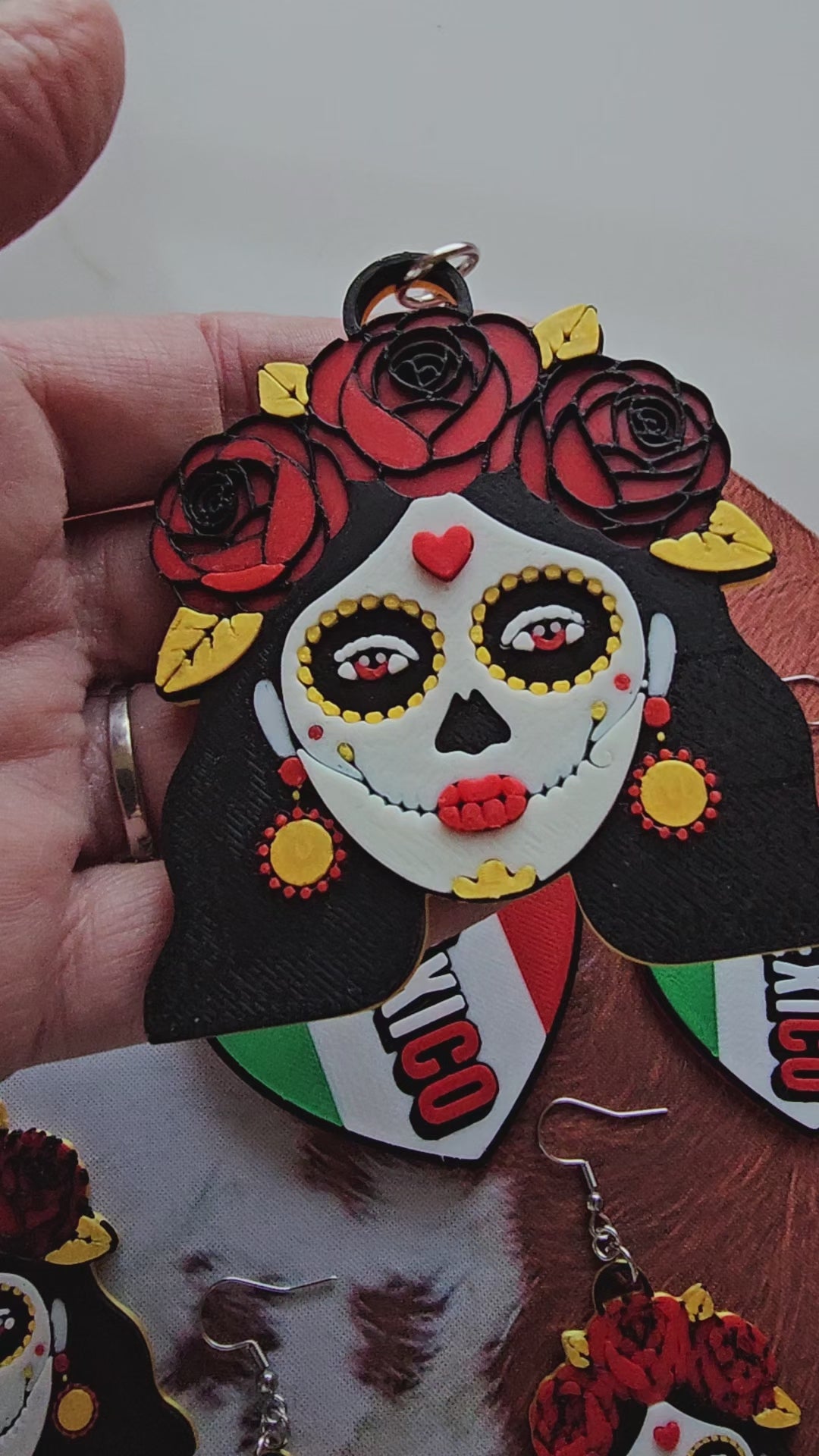 Celebrate the vibrant spirit of Mexican culture with this stunning 3D-printed Día de los Muertos collection! Each piece features the iconic sugar skull design—a powerful symbol of remembrance and festivity that honors tradition while embracing life's beauty. Choose between a bold keychain to carry your cultural pride everywhere or elegant earrings that make a striking statement. Meticulously crafted with intricate details, these pieces capture the colorful essence and deep meaning of Day of the Dead. Perfect for cultural celebrations, meaningful gifts, or adding authentic Mexican flair to your everyday style. Wear your heritage with pride!