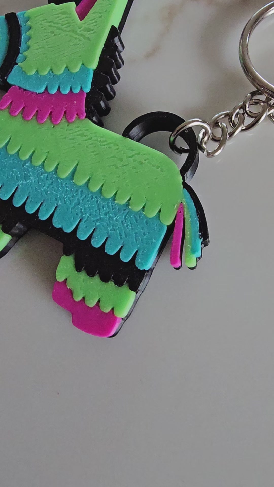 Bring the fiesta wherever you go! This adorable 3D-printed pinata donkey keychain captures all the joy and color of a Mexican celebration. Perfect for adding a playful pop to your keys, bag, or backpack, it's an instant conversation starter. Whether you're gifting it to a friend who loves festive vibes or treating yourself to something fun, this charming little companion spreads smiles every single day.