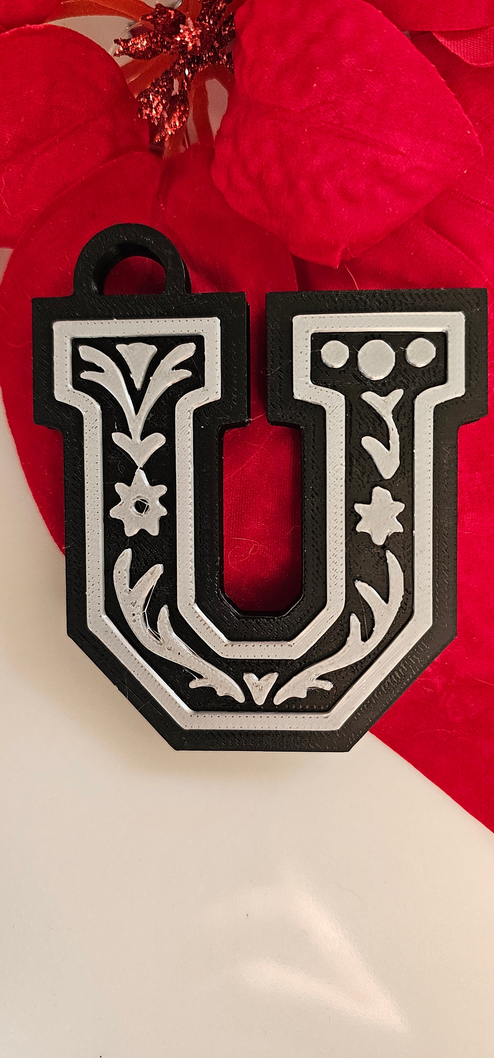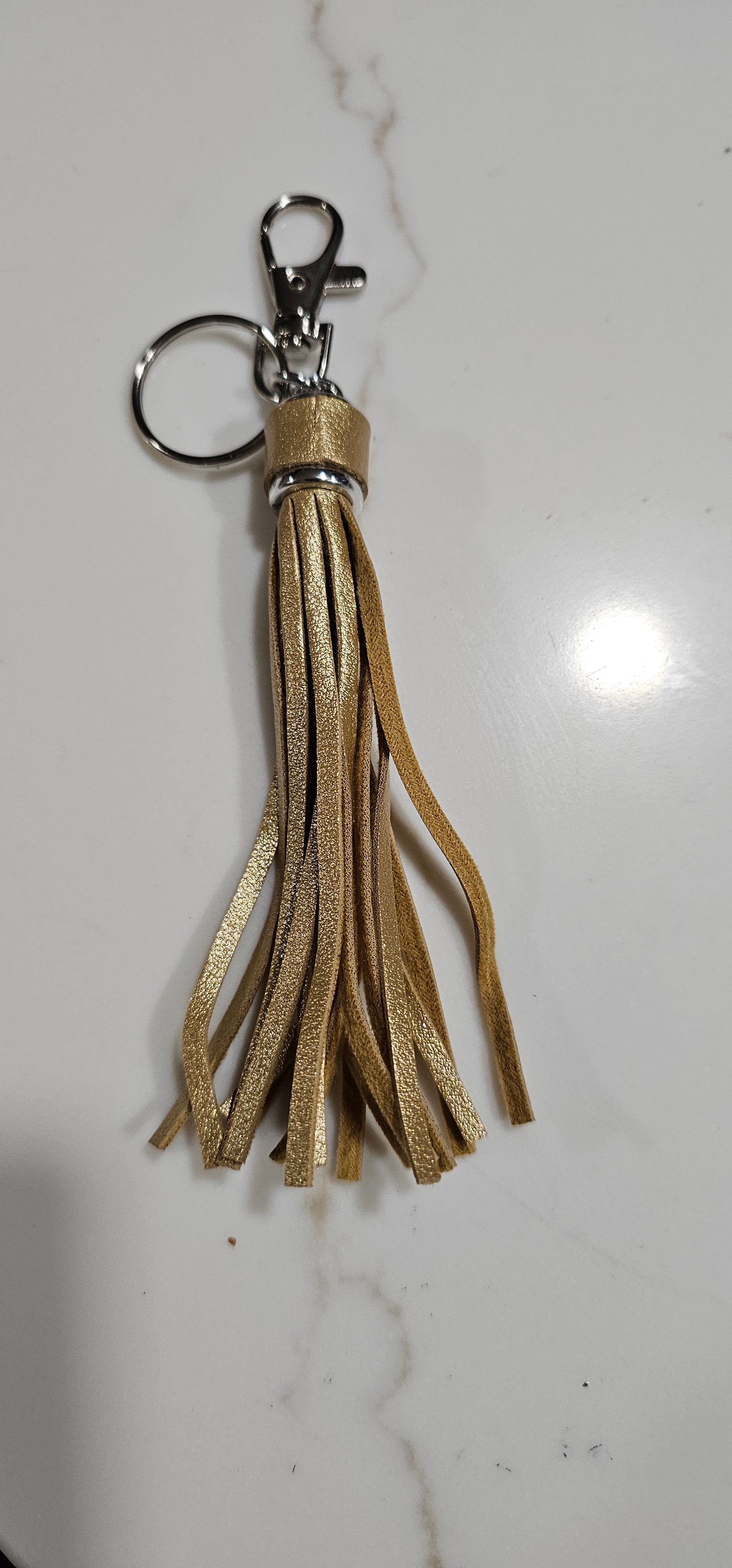 First choose your color of initial - silver, gold, brown (on black background) or turquoise (on white background), then choose your fringe color - gold faux leather tassel or silver faux leather tassel.