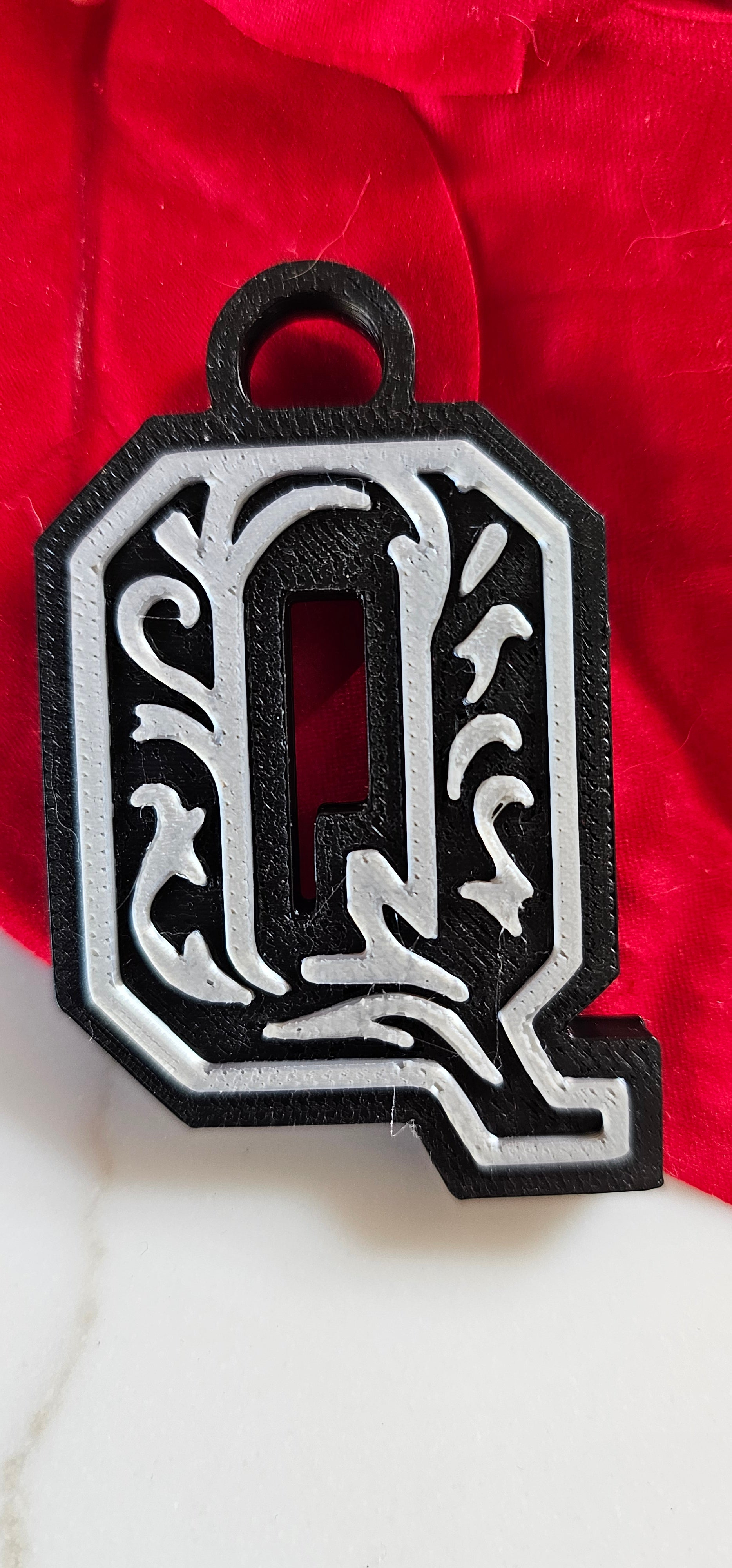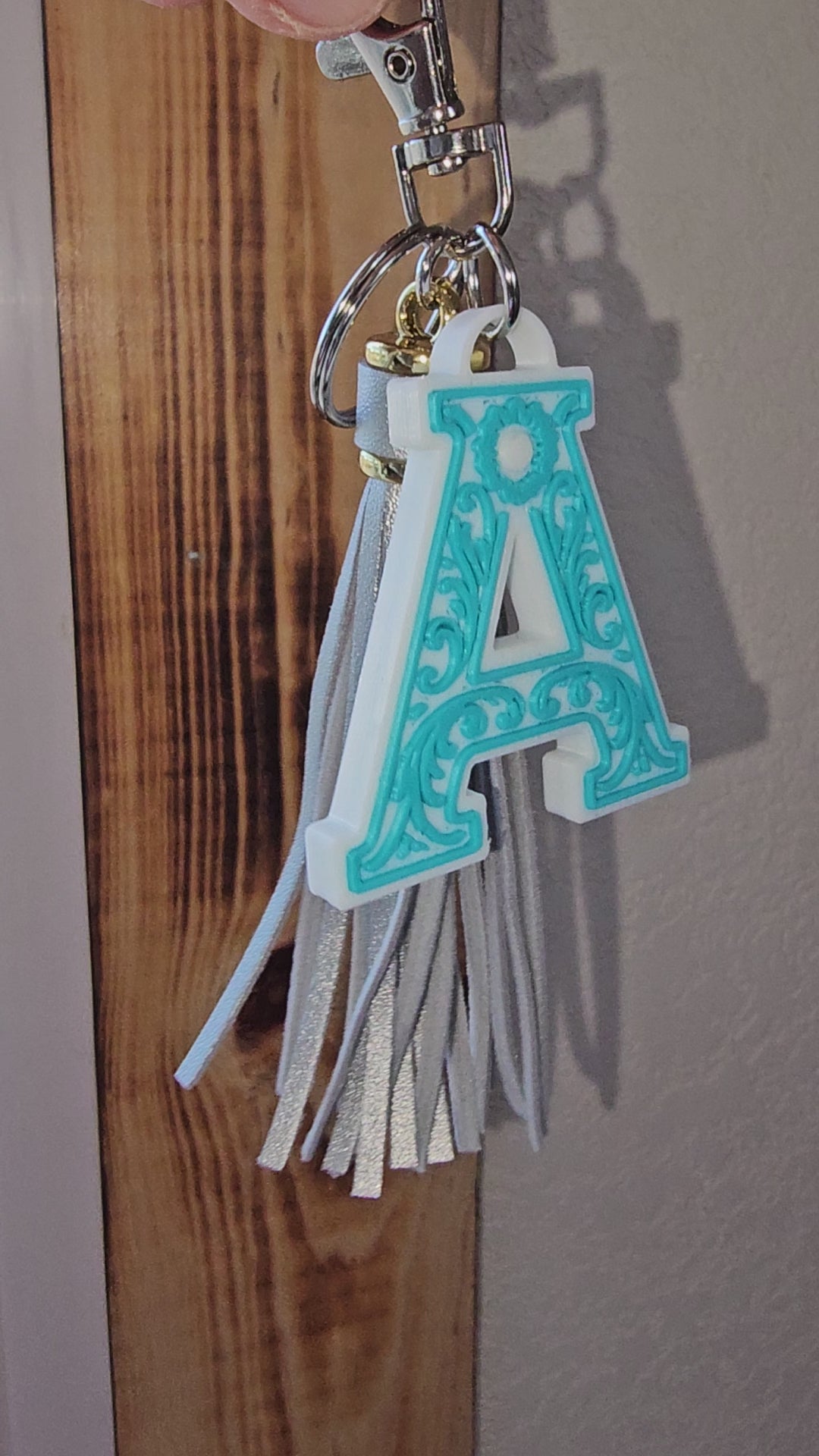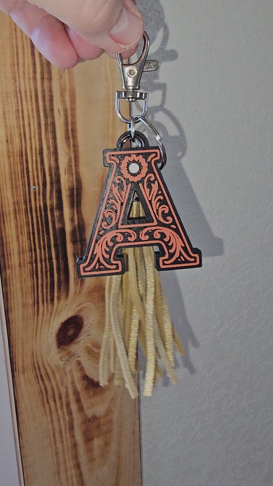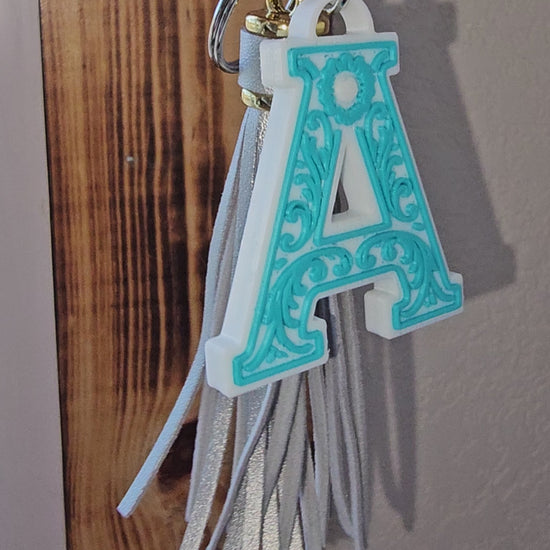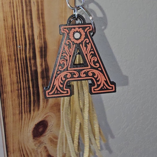 3D Print Tooled Leather Look Initial Fringe Keychain Purse Charm Choice of Colors