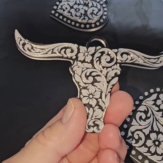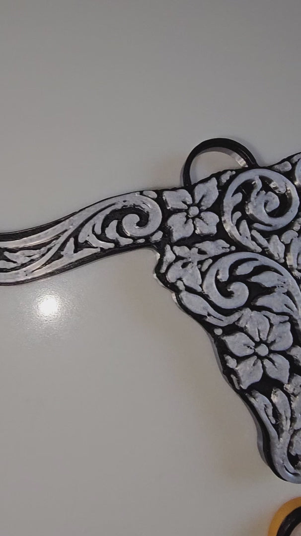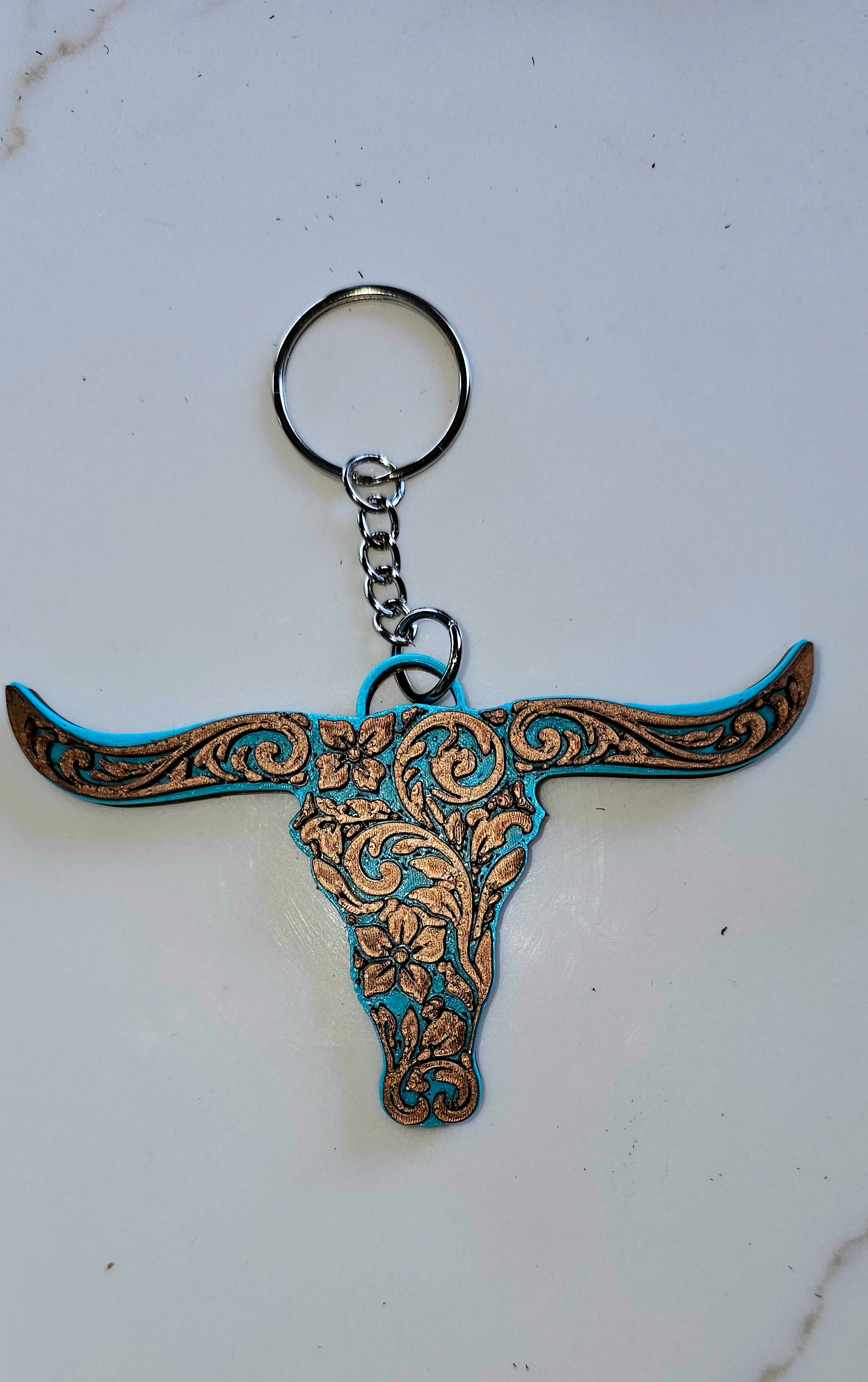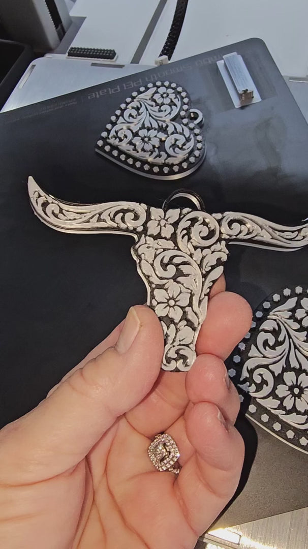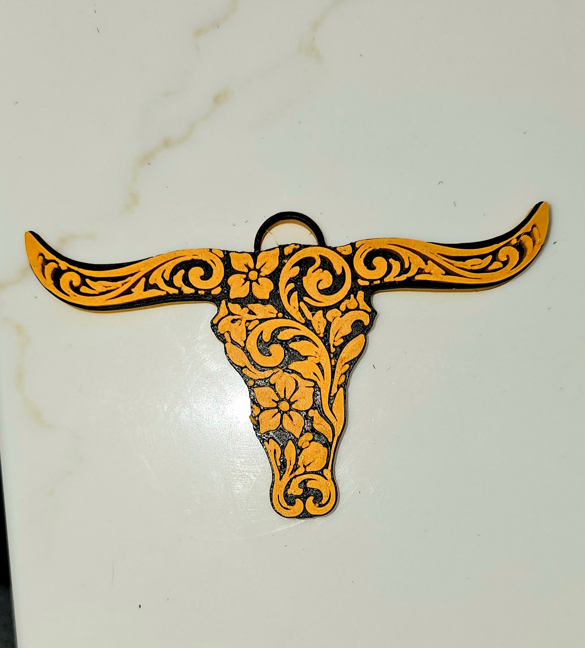 3d Print Tooled Longhorn Keychain or Purse Charm Ornament - Made in America - choice of colors
