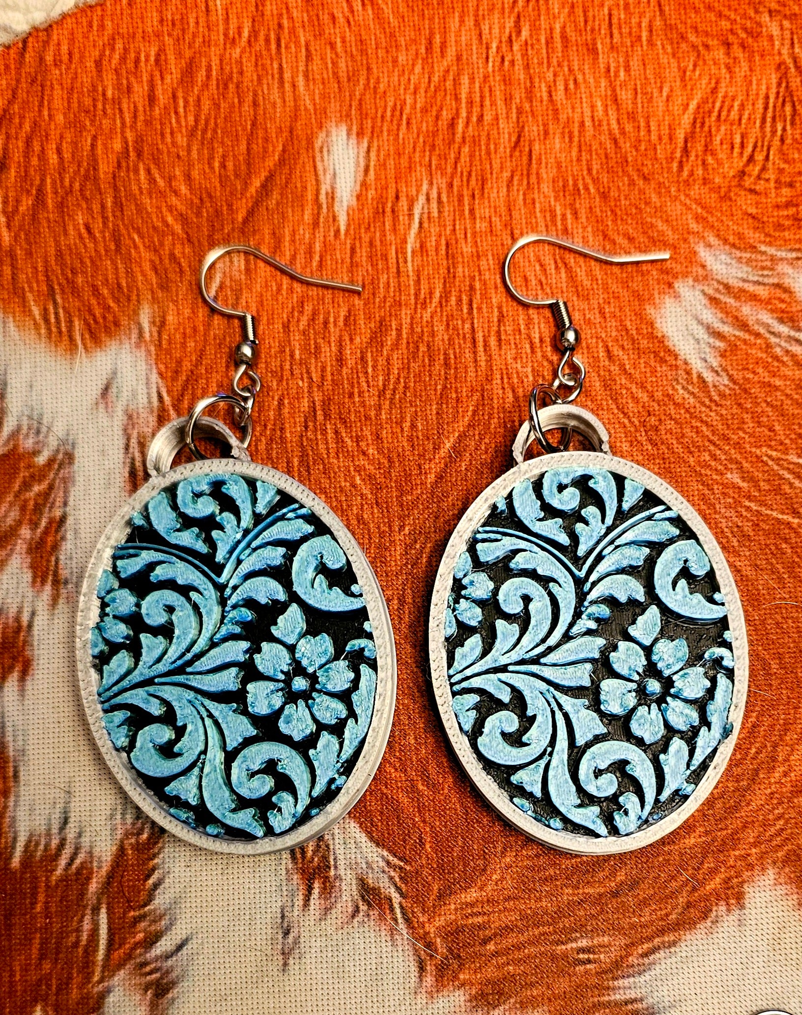 3D Print Western Tooled Turquoise Earrings Made in America