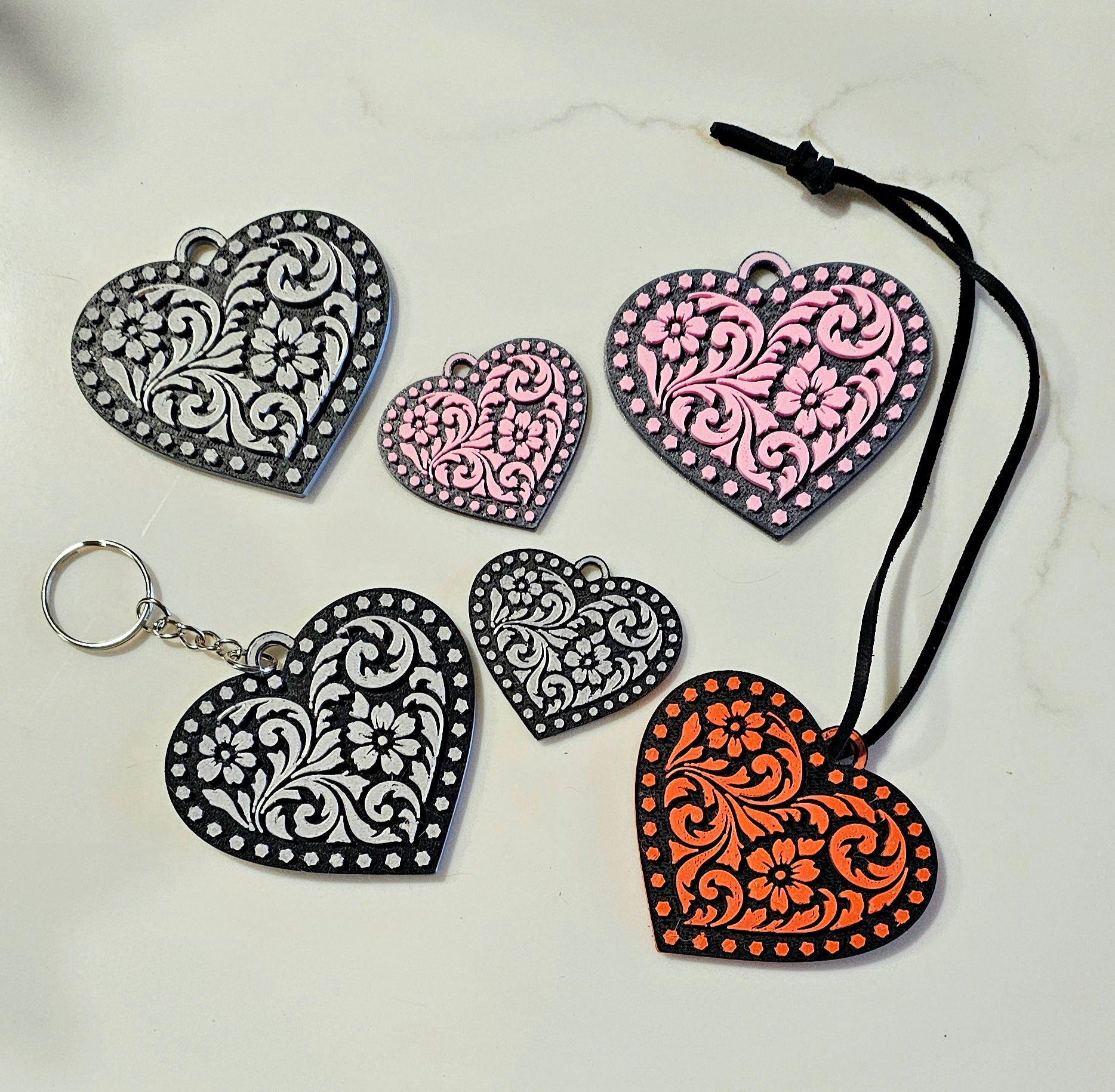 3d Printed Tooled Cowboy Cowgirl Heart Keychain or Purse Charm