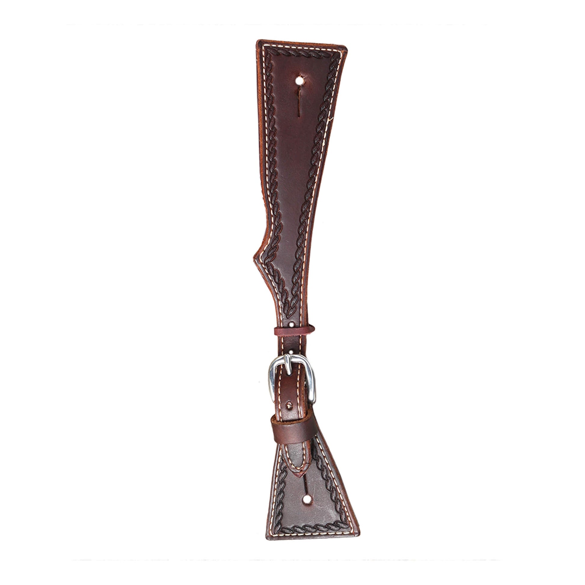Elite men's square spur straps chocolate leather rope tooled.