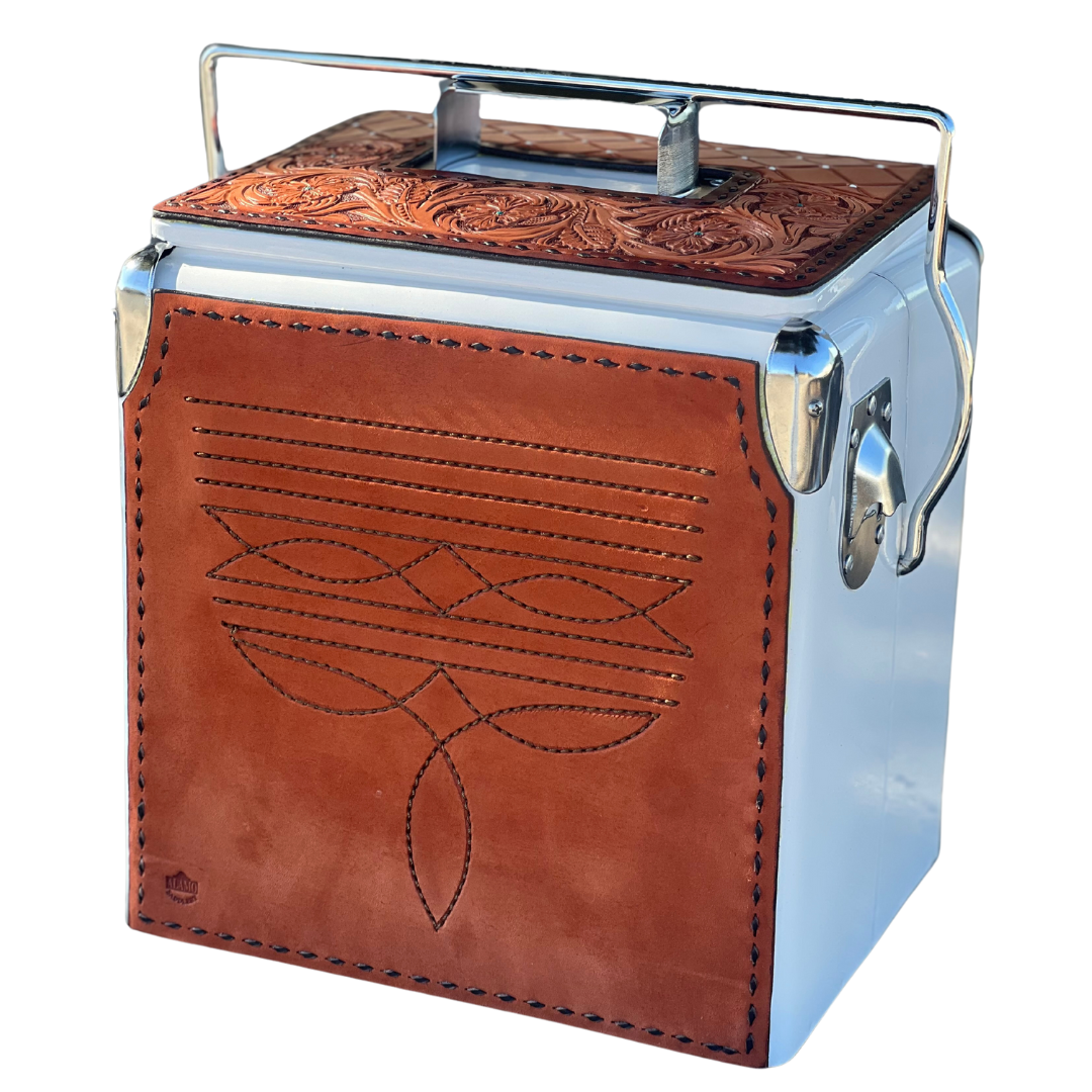 Alamo Saddlery Retro Rodeo White Cooler- Toast Cowboy Stitch