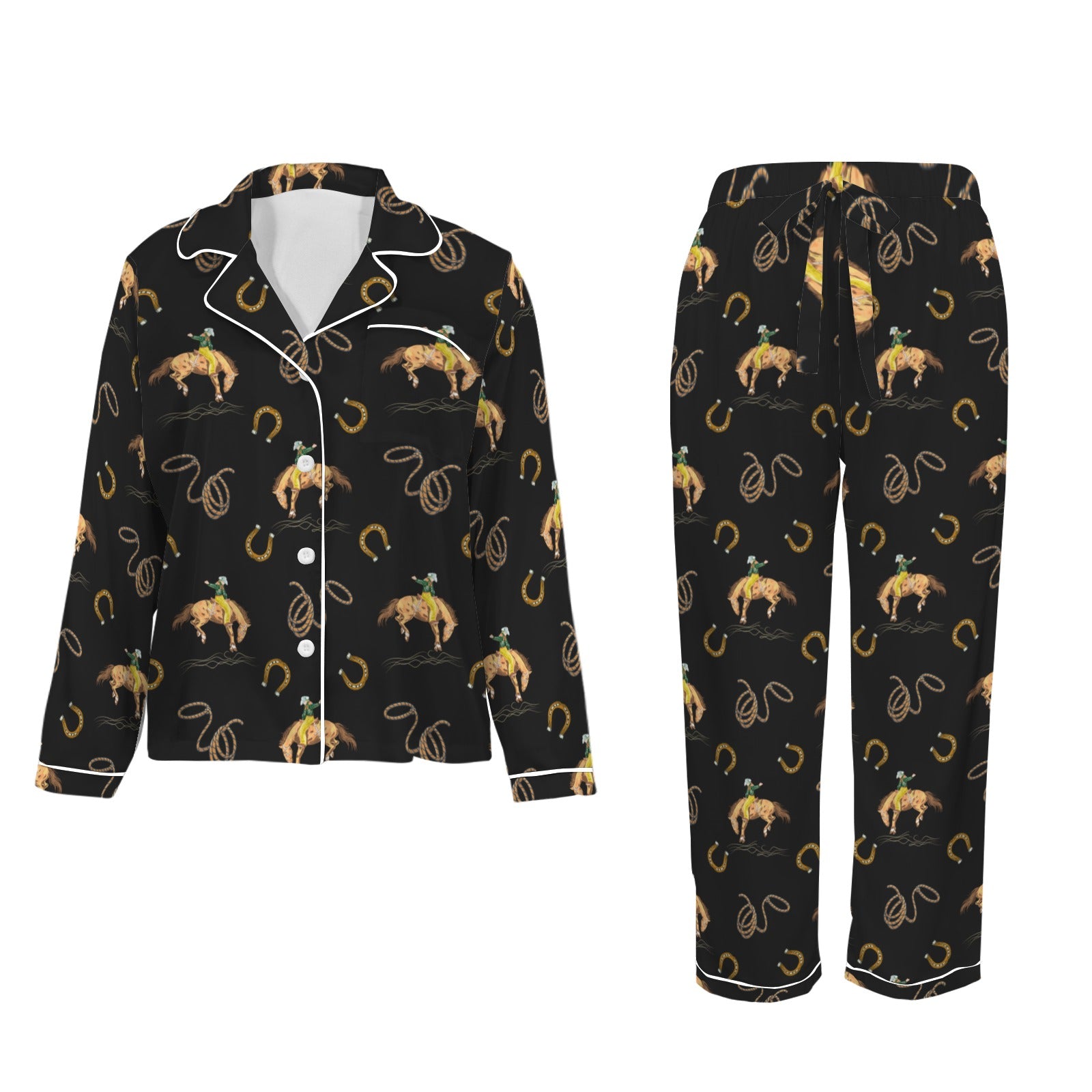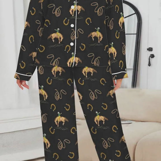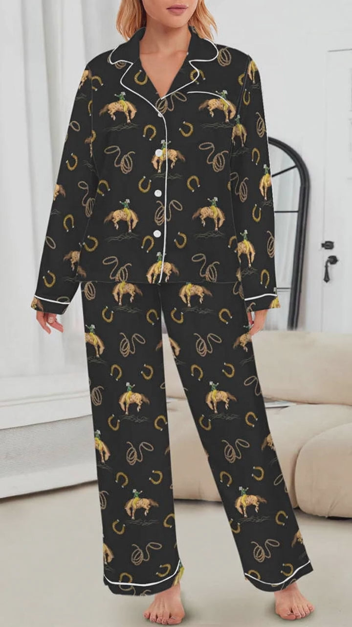 All Cowboy Western Satin Long Pajamas