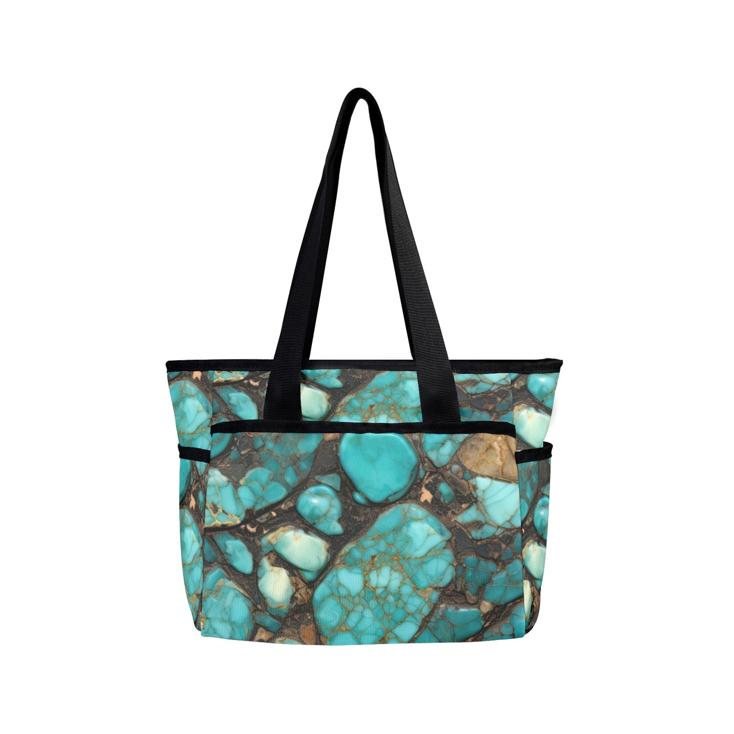 - It also has an open pocket and a zippered pocket on the outside for easy access to items. Additionally, there are two side pockets for quick retrieval of small items. With soft drop handles, this bag can be comfortably held in your hand or on the shoulder.