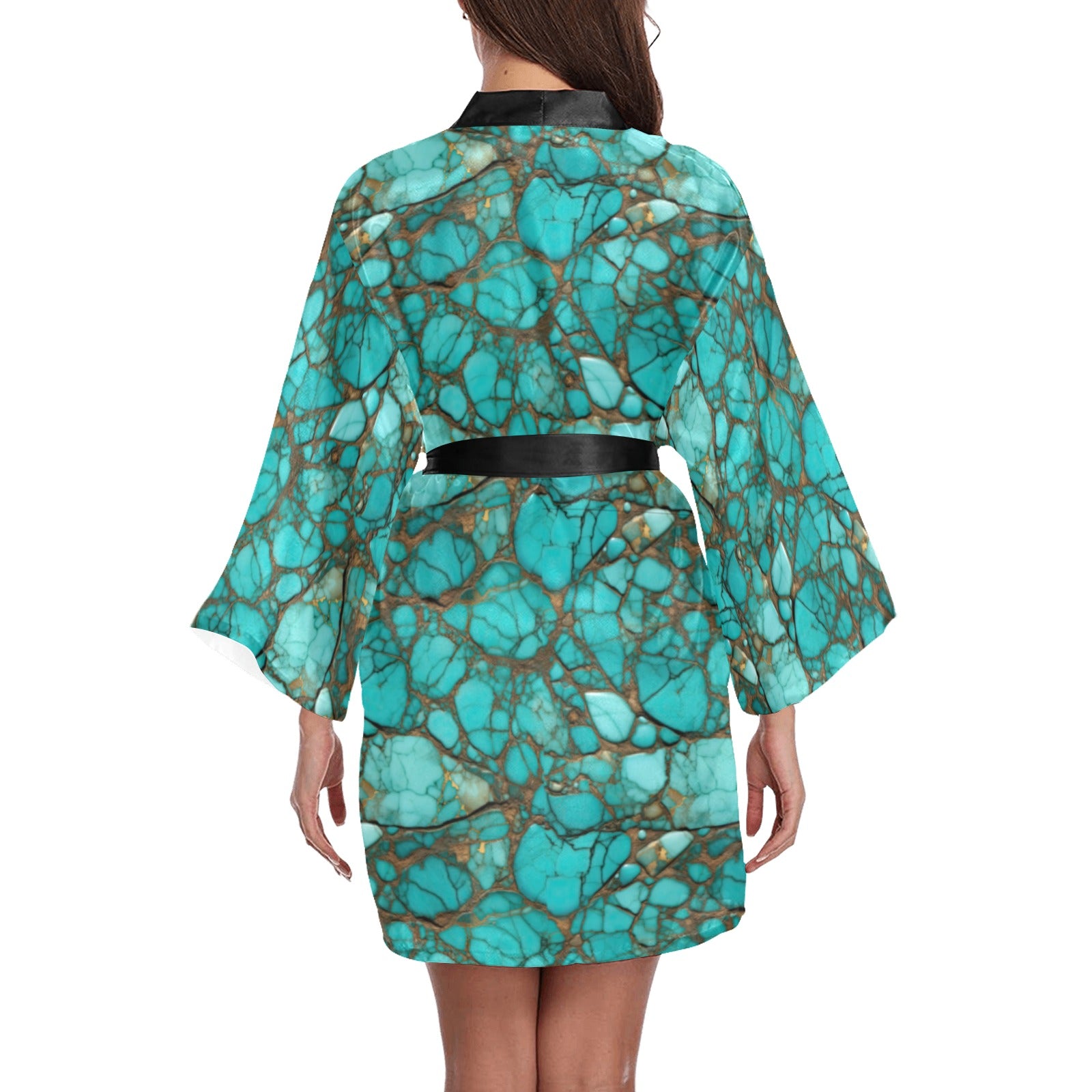 All Turquoise Satin Kimono Sleeve Robe