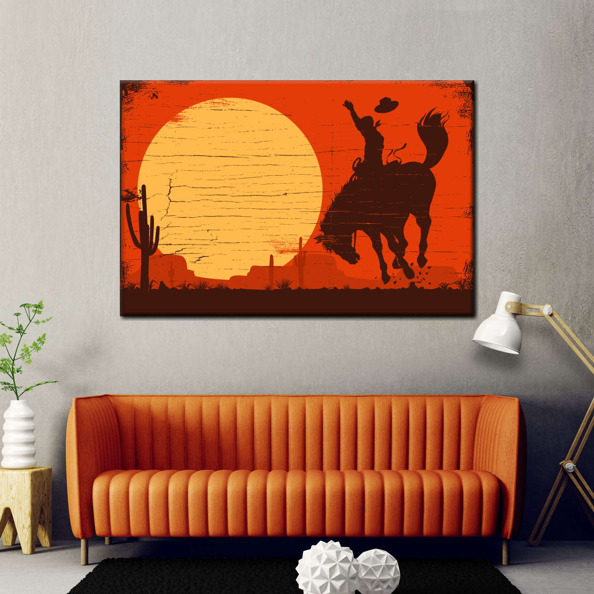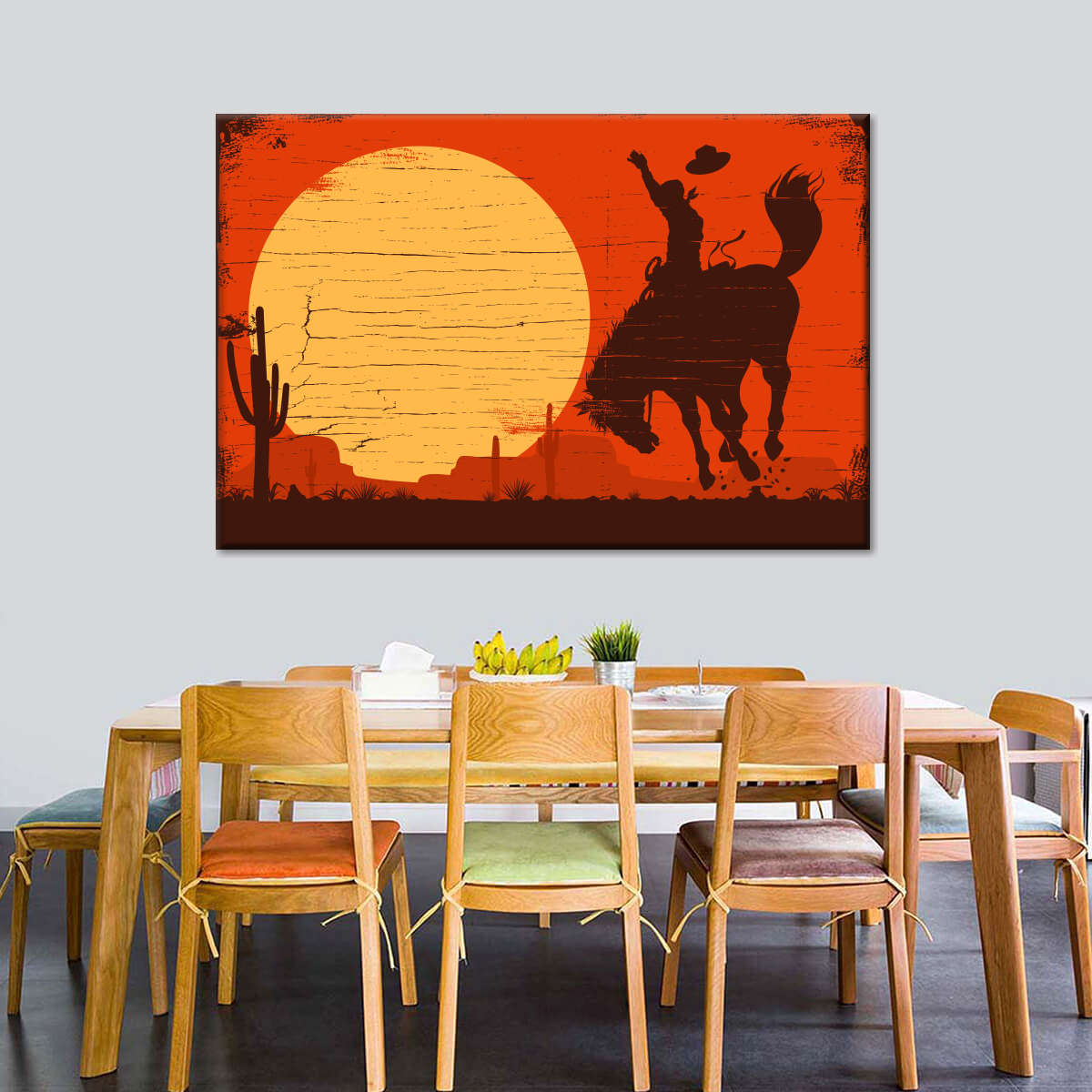 American Cowboy Wall Art brings western style into your home in one easy step. This stunning canvas print will inspire you to enjoy the freedom of spirit like a true cowboy.