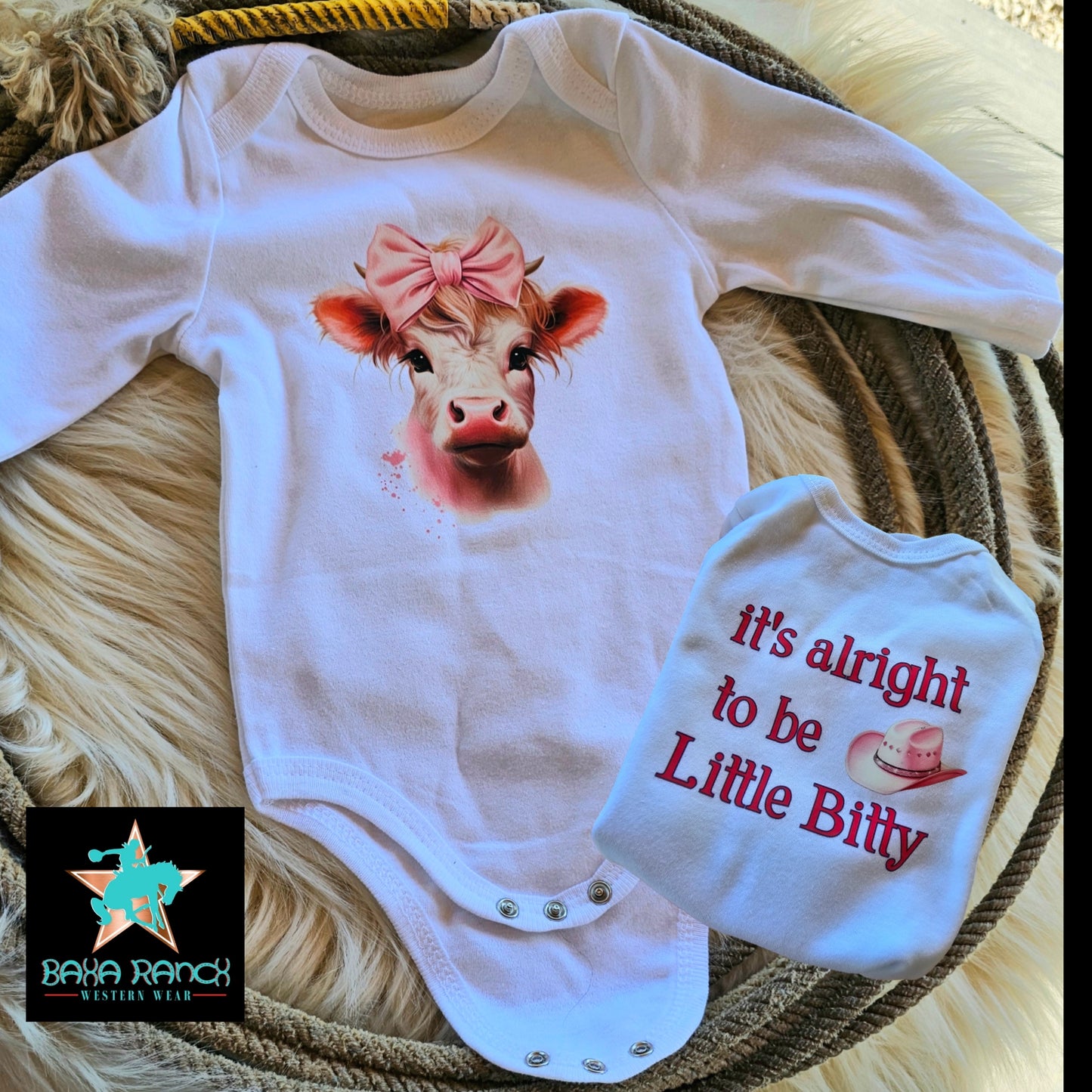 Welcome your littlest one to the world with this Baby Cow Little Bitty Long Sleeve Bodysuit So fun and organic, this baby bodysuit is all-natural and comes with a cute message on the back, guaranteed to make you smile. Put this one on for a memorable, extra-adorable debut. Yee-haw!