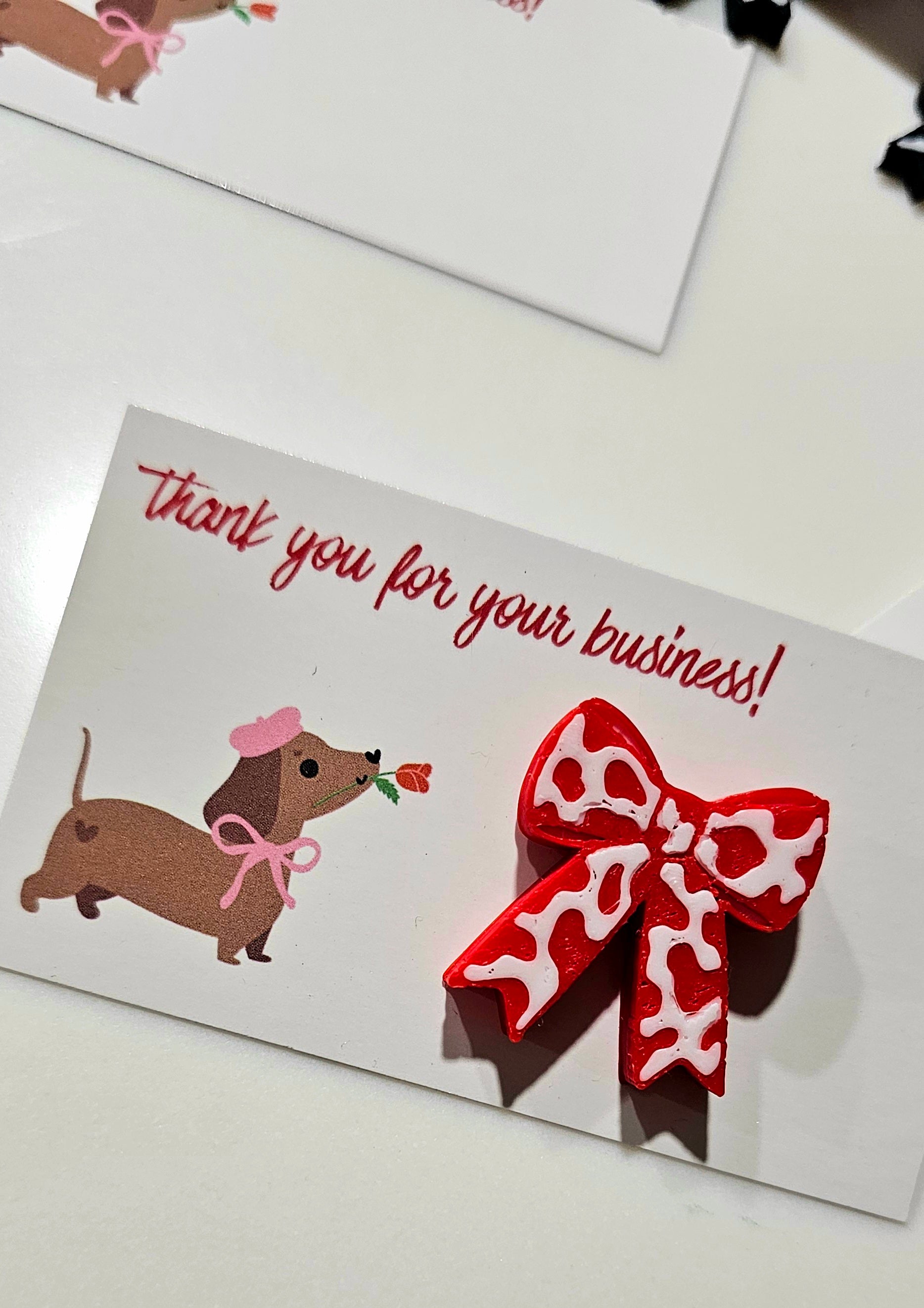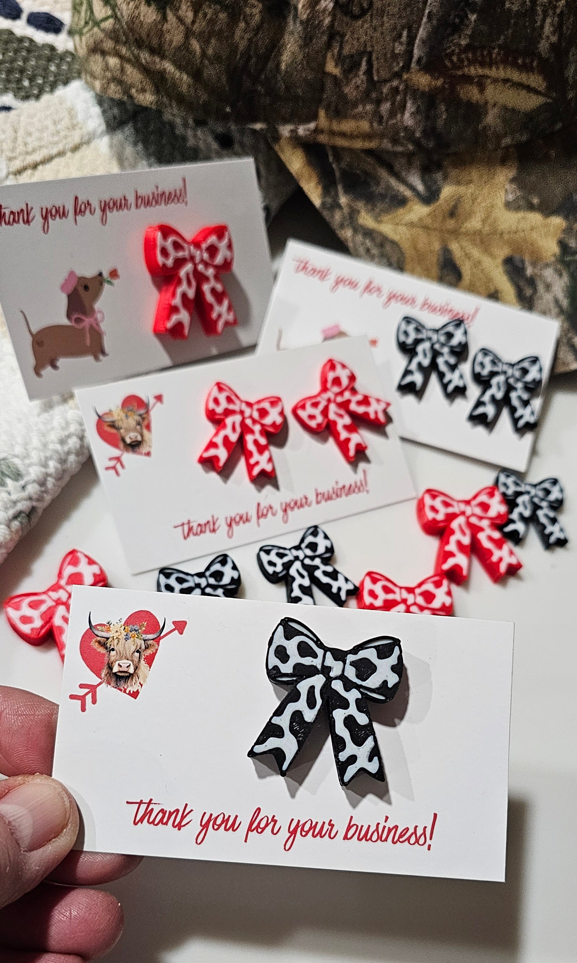 Bag of 25 -Boutique 3d Printed Package Inserts Cow Print Bows Pins or Earrings Made in America