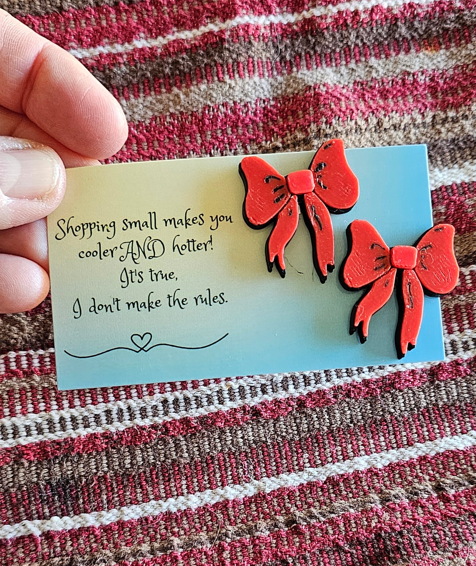 Bag of 25 -Boutique 3d Printed Package Inserts Red Bow Earrings Made in America