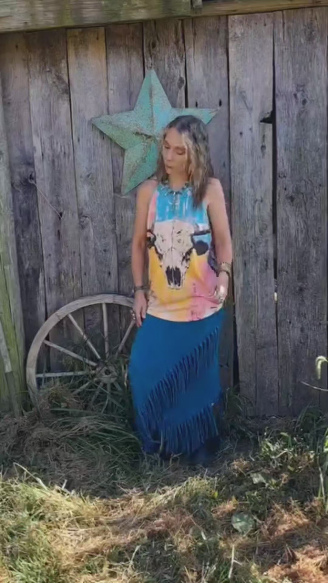 Baha Ranch Bull Skull Retro Pop Western Tank Top