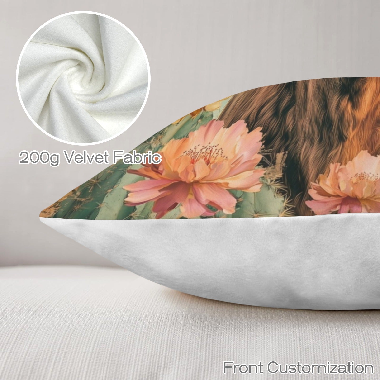 Baha Ranch Cactus Highland Velvety Soft Throw Pillow Case Made in America