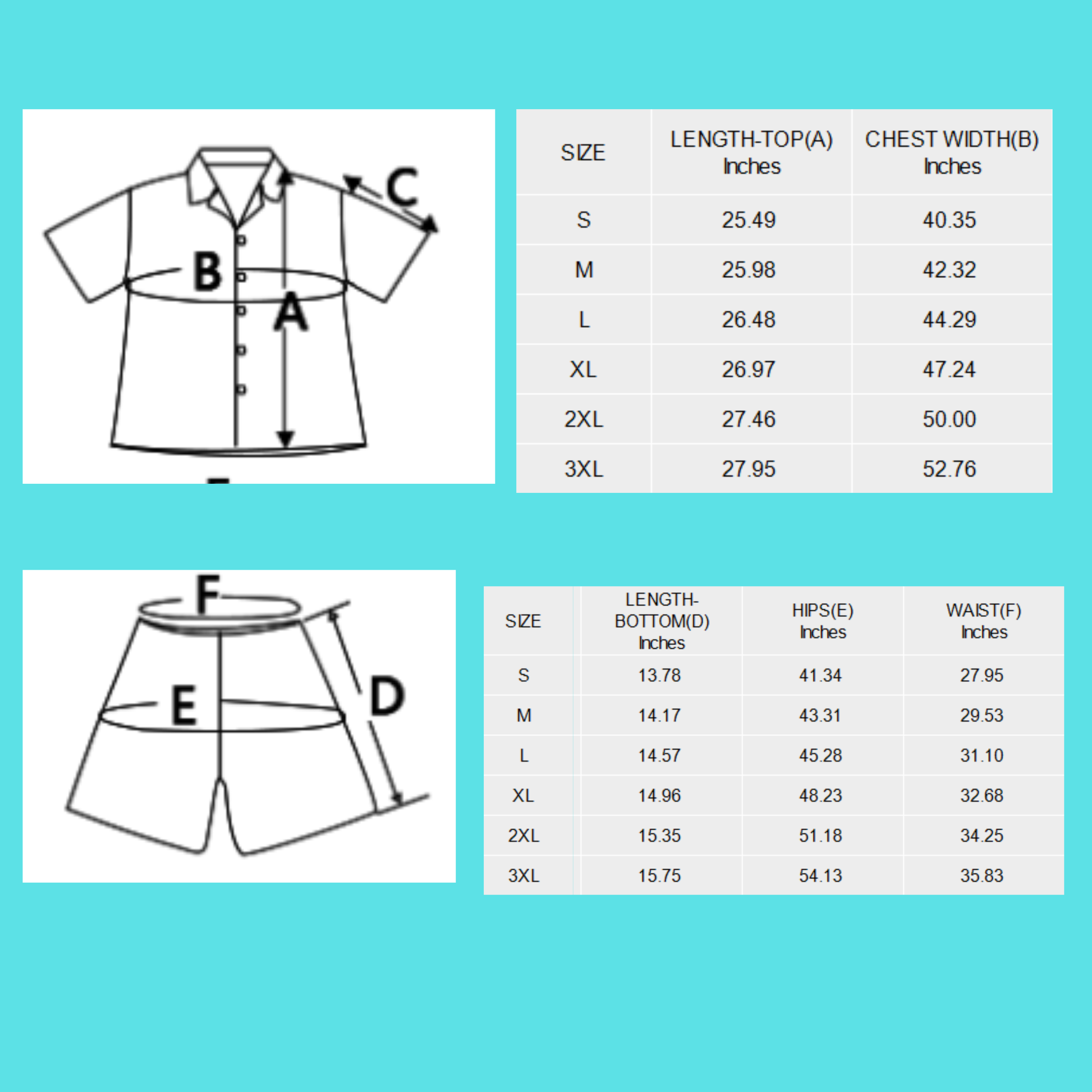 - Sizes: S, M, L, XL, 2XL, 3XL. Size chart in photos.