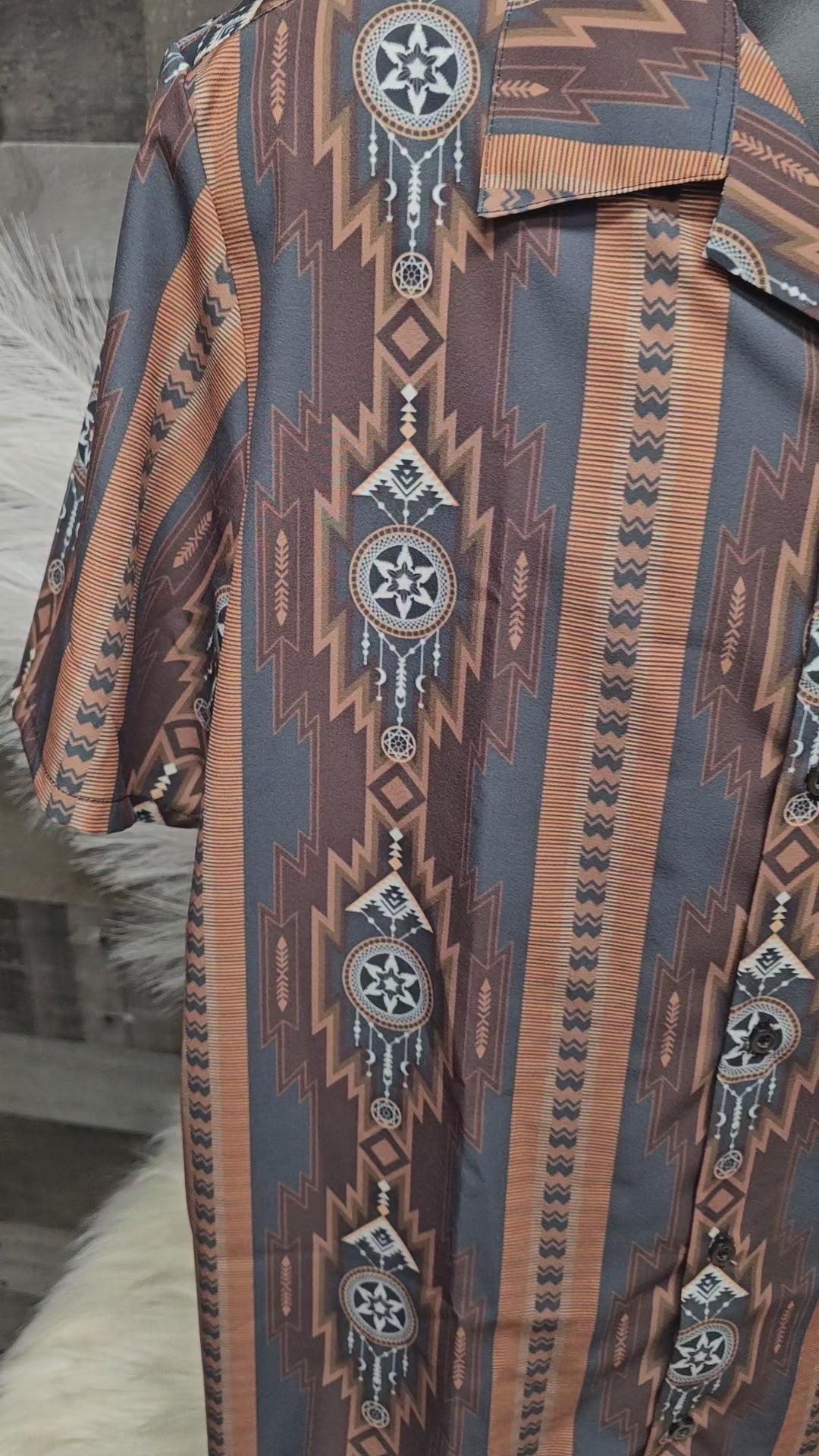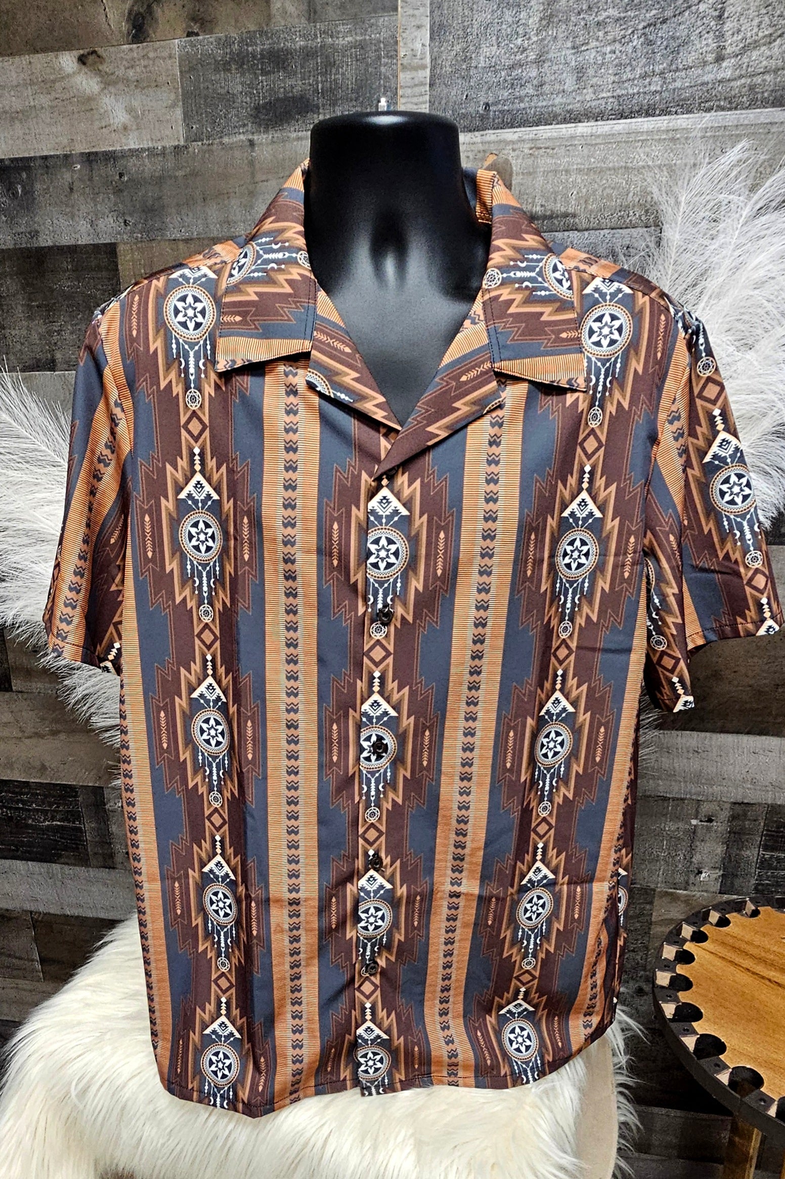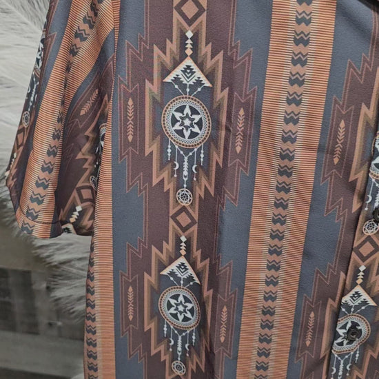 Baha Ranch Mocha Aztec Hawaiian Shirt Made in America