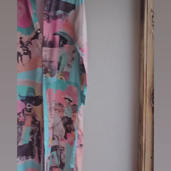 Baha Ranch Retro Pop Western Button Up Shirt Dress Duster