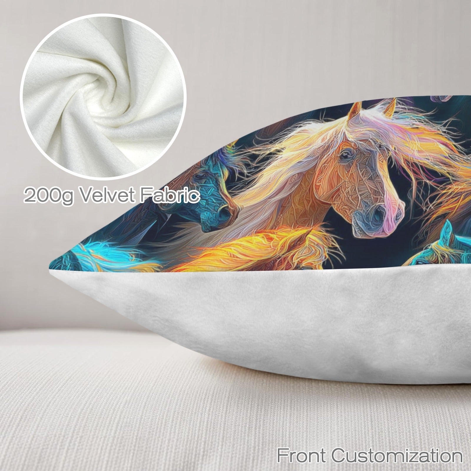 Baha Ranch Velvety Soft Colorful Horses Pillow Cover Made in America