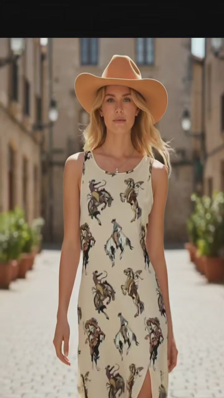 Baha Ranch Vintage Cowgirl Sleeveless Bodycon Side Slit Long Maxi Dress