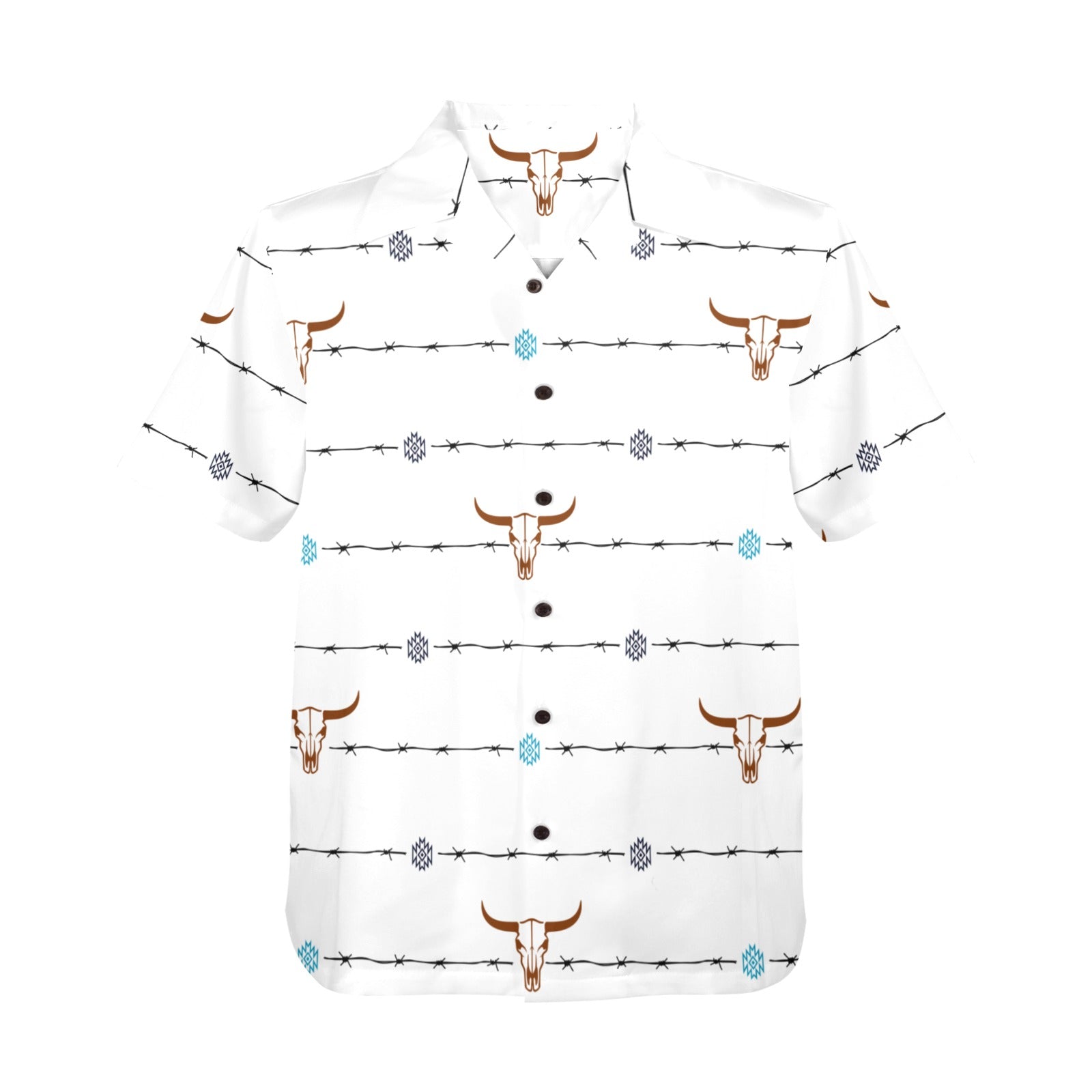 Baha Ranch White Bullhead Aztec Hawaiian Shirt Made in America