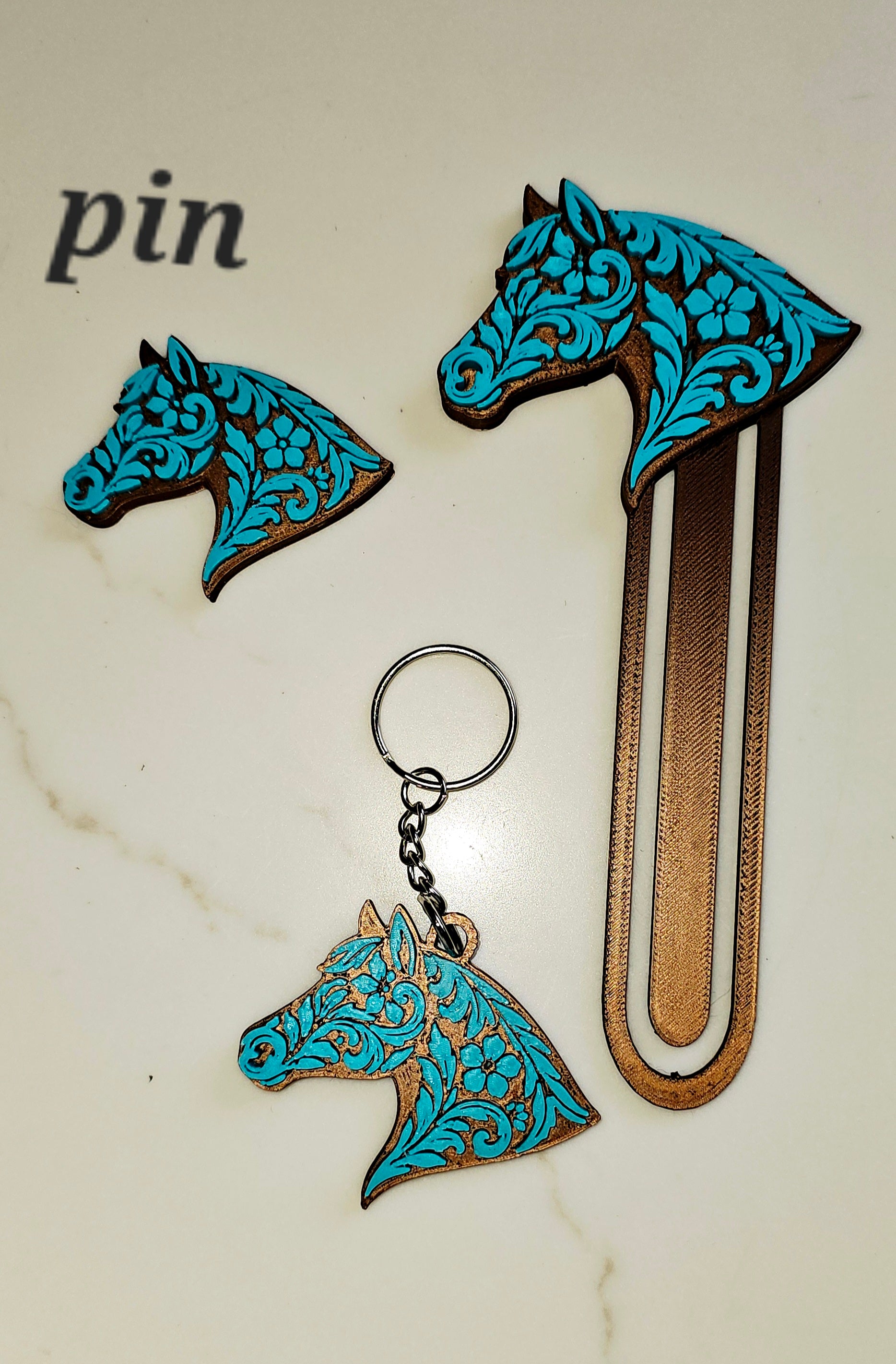 Baha Ranch Year of the Horse Tooled 3d Print Bookmark Keychain Hatpin Magnet Purse Charm Made in America