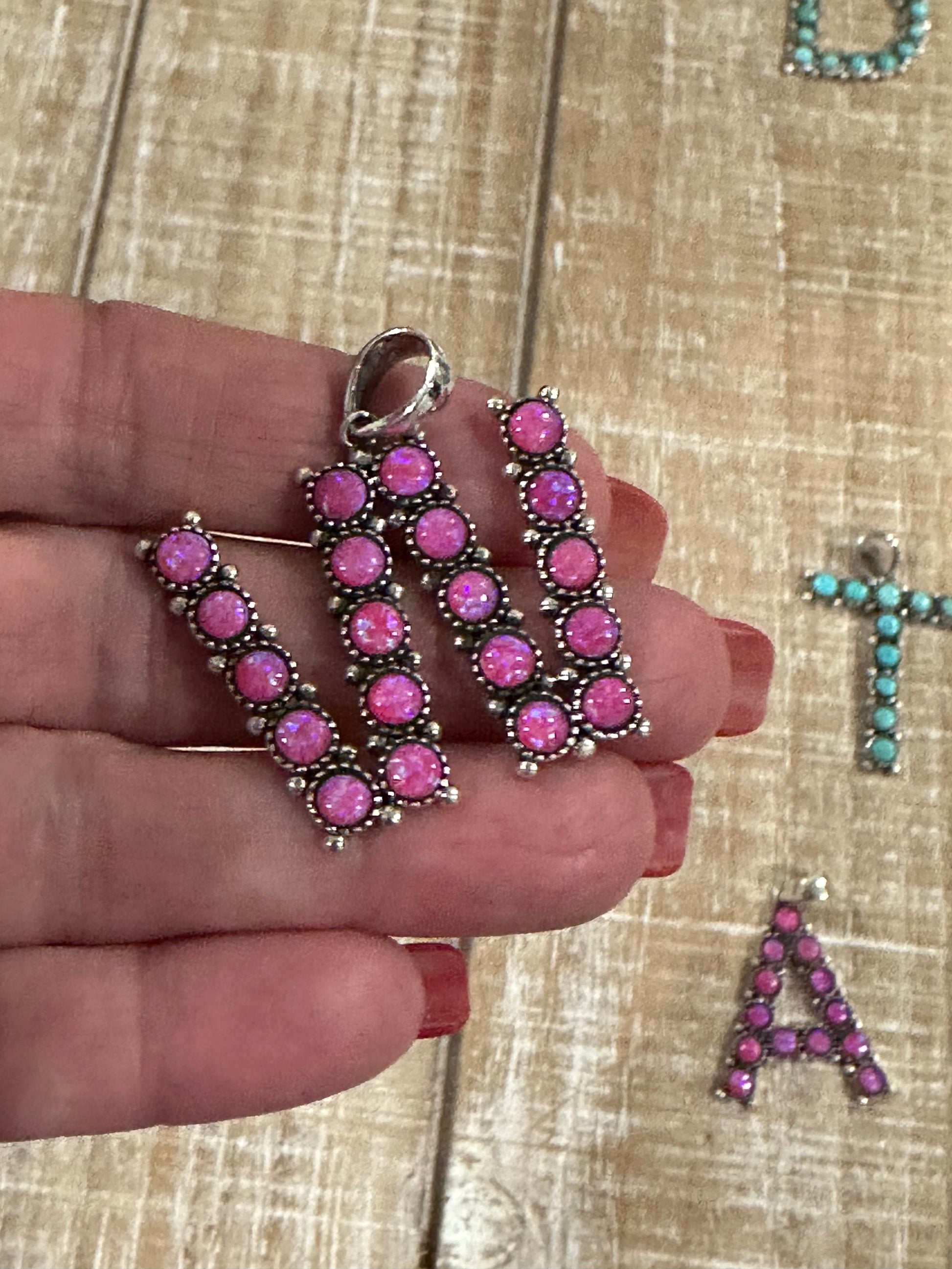 Pink Opal letter listings in an other listing.Listing is for one pendant only.