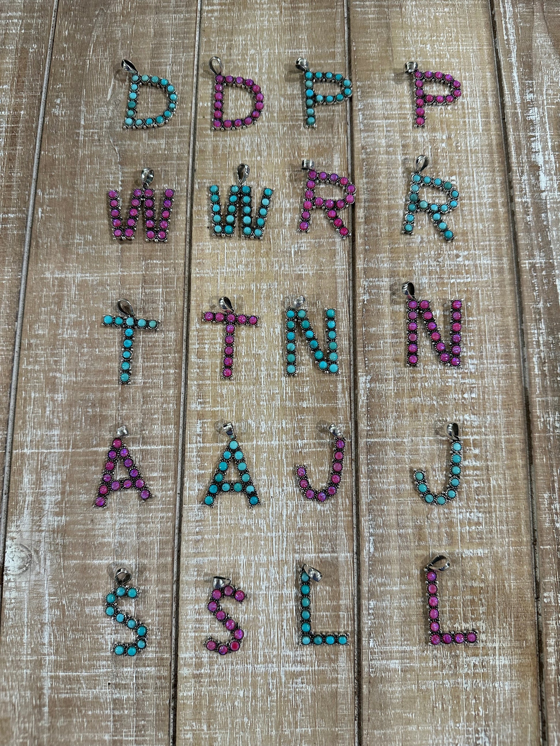 Beautiful Handmade Sterling Silver and Turquoise Letter Pendant