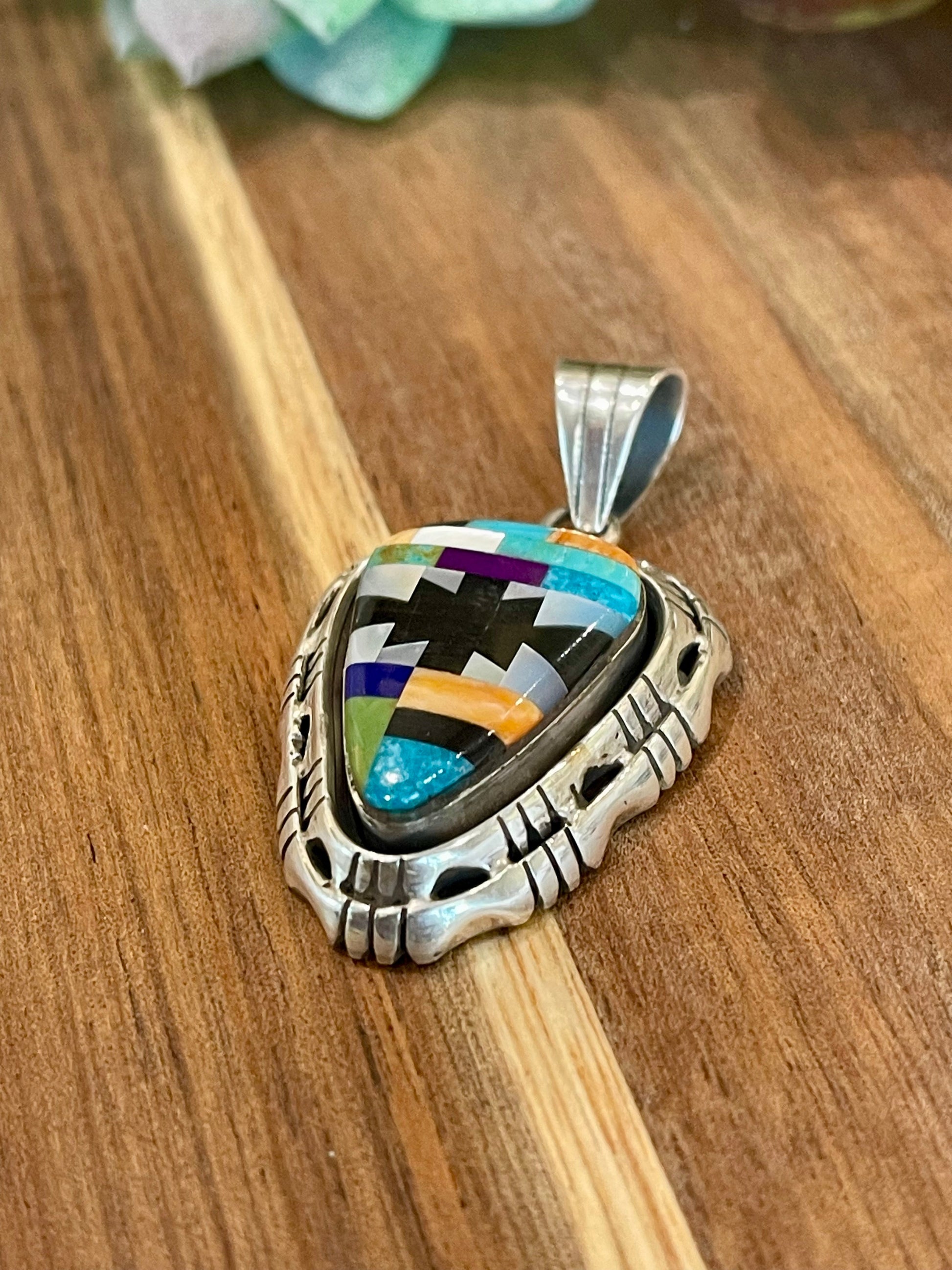 Beautiful Handmade Sterling Silver & Multi Stone Inlay Pendant