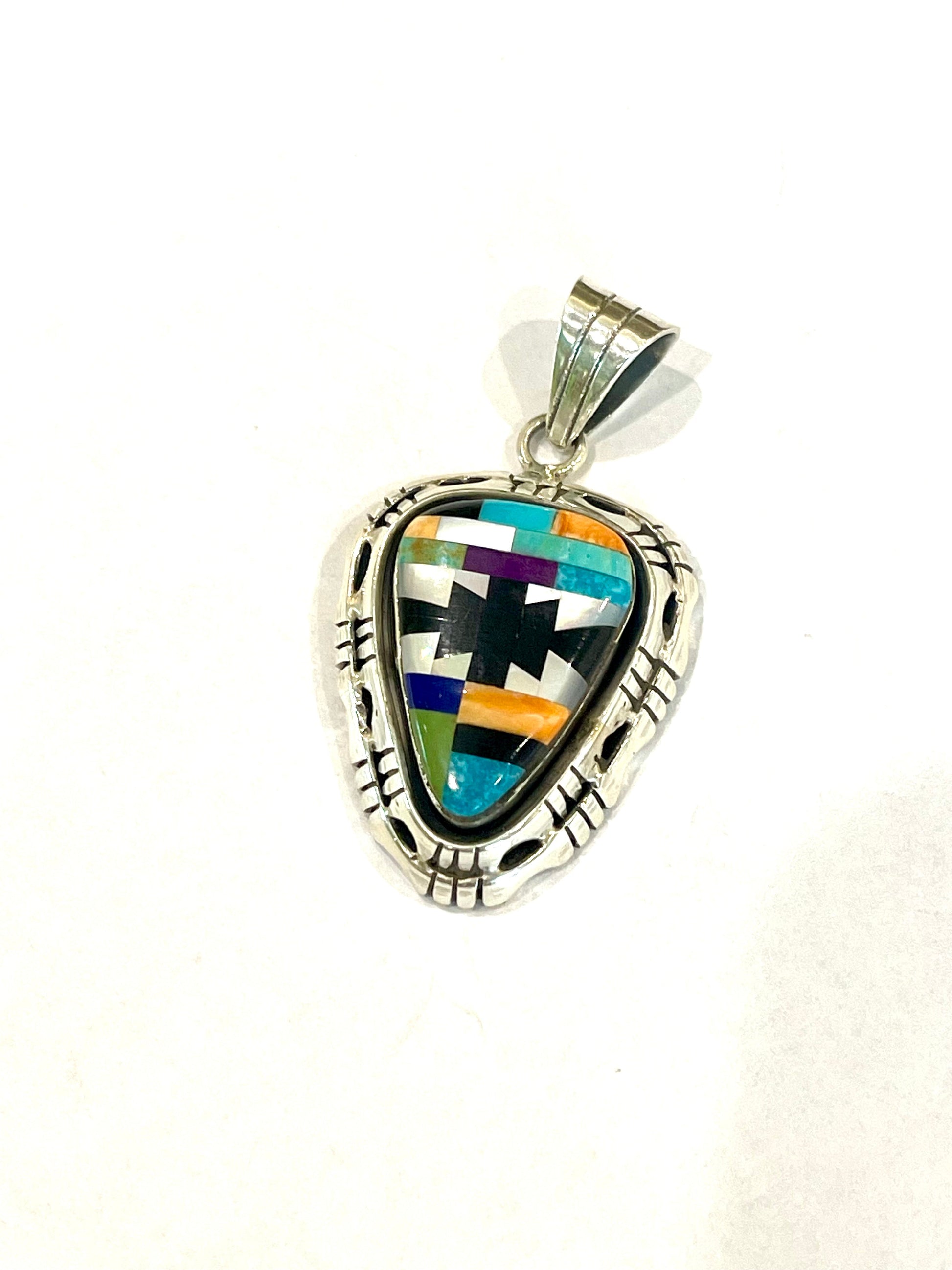 Beautiful Handmade Sterling Silver & Multi Stone Inlay Pendant.
