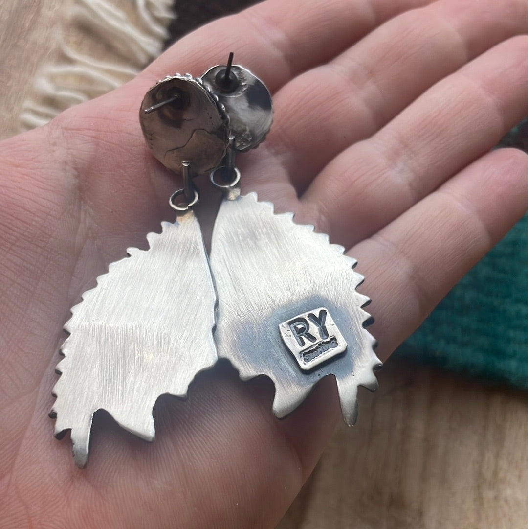 Beautiful Navajo Sterling Silver & Orange Spiny Dangle Chief Earrings Signed