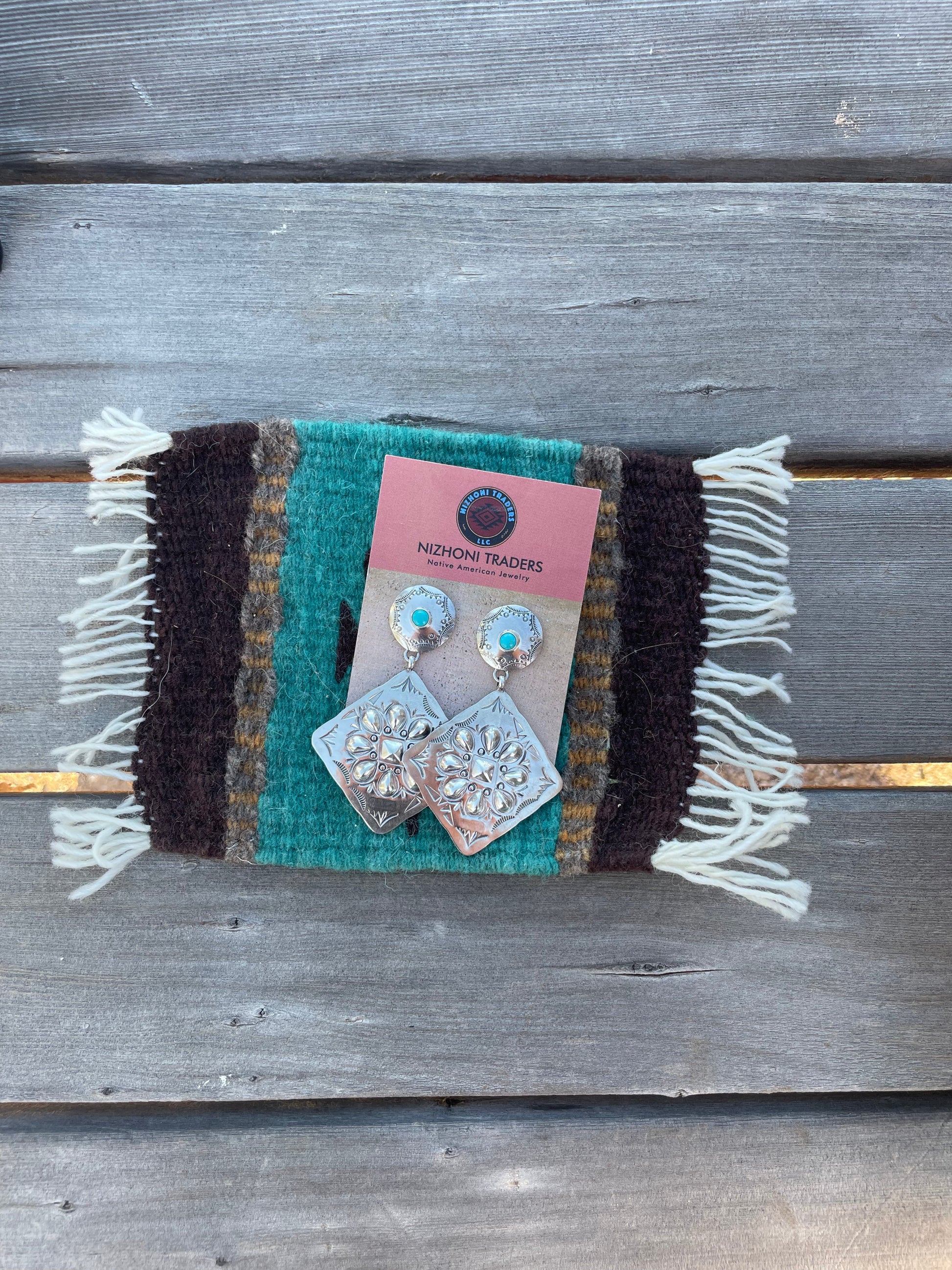 Beautiful Navajo Sterling Silver & Turquoise Concho Dangle Earrings Signed