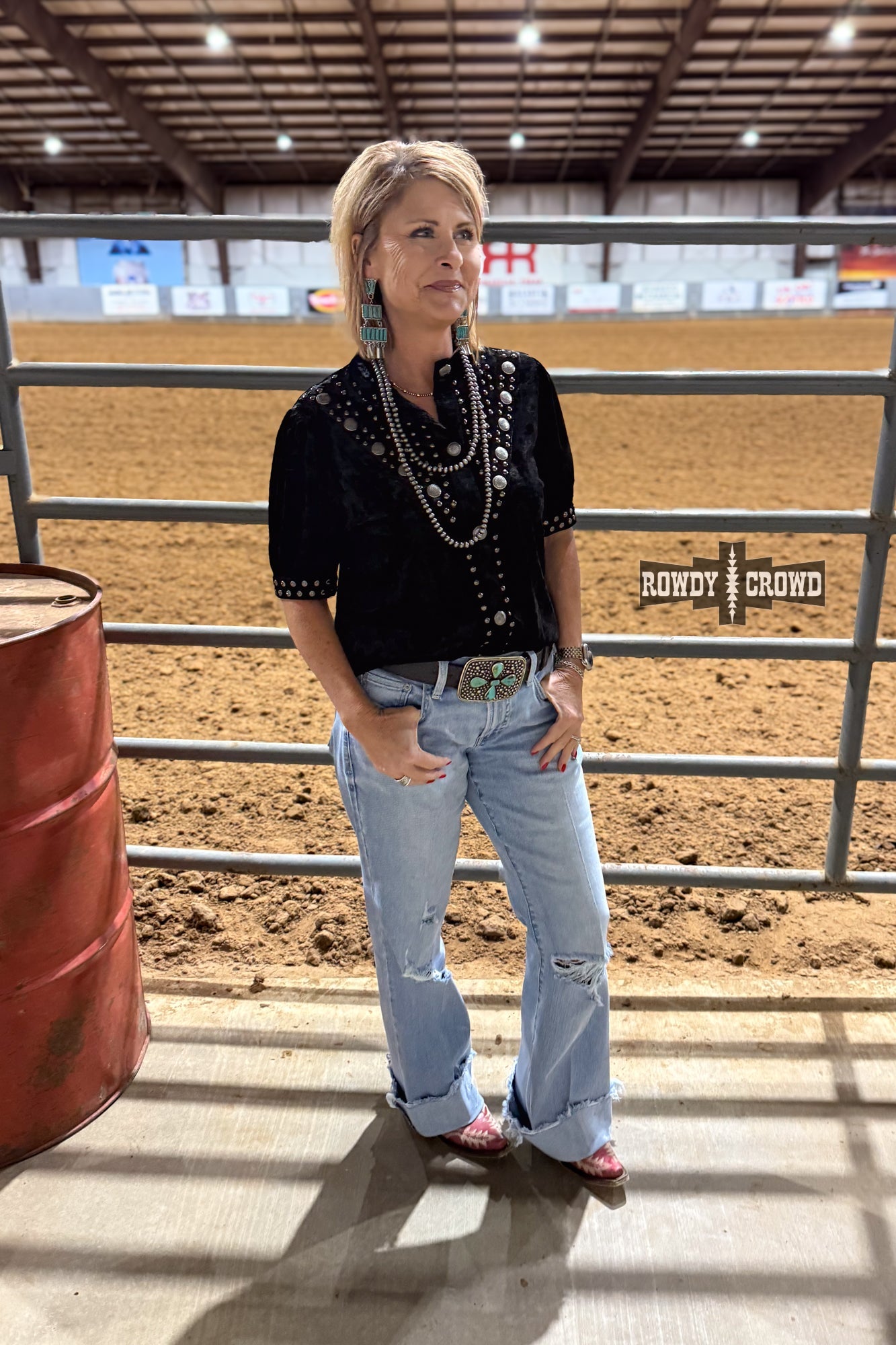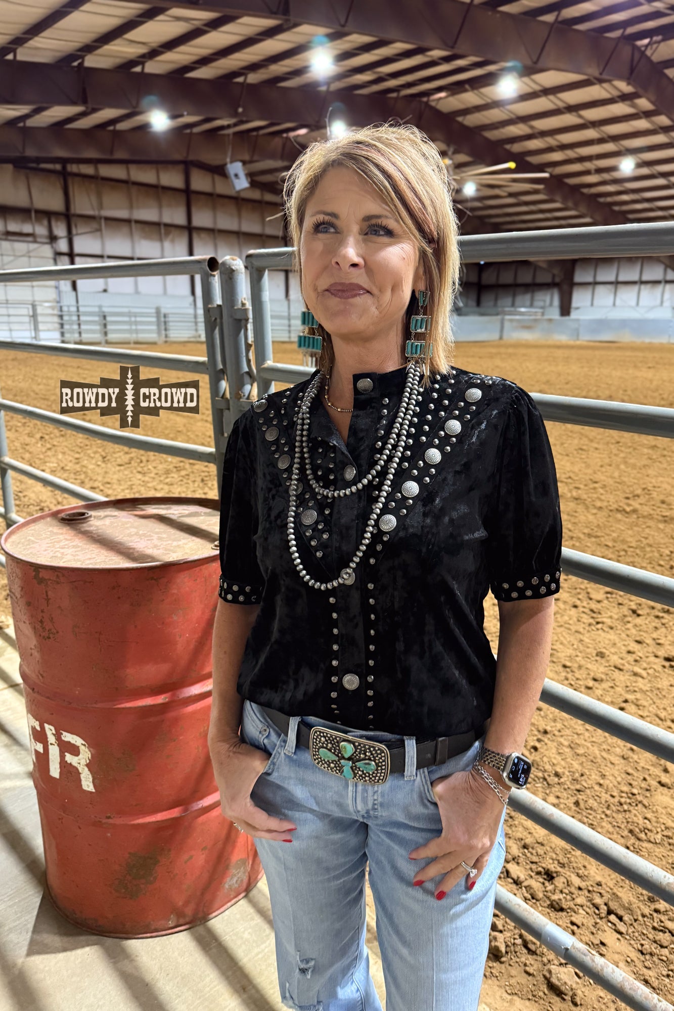 The Vallejo Velvet Button Up brings all the drama in the most western way. Crafted from ultra-soft crushed velvet, this top shines with studded detailing, concho-inspired buttons, and a silhouette that’s equal parts classy and cowgirl. Whether you choose the bold Black or the rich Teal, each one catches the light and adds instant texture to your outfit.