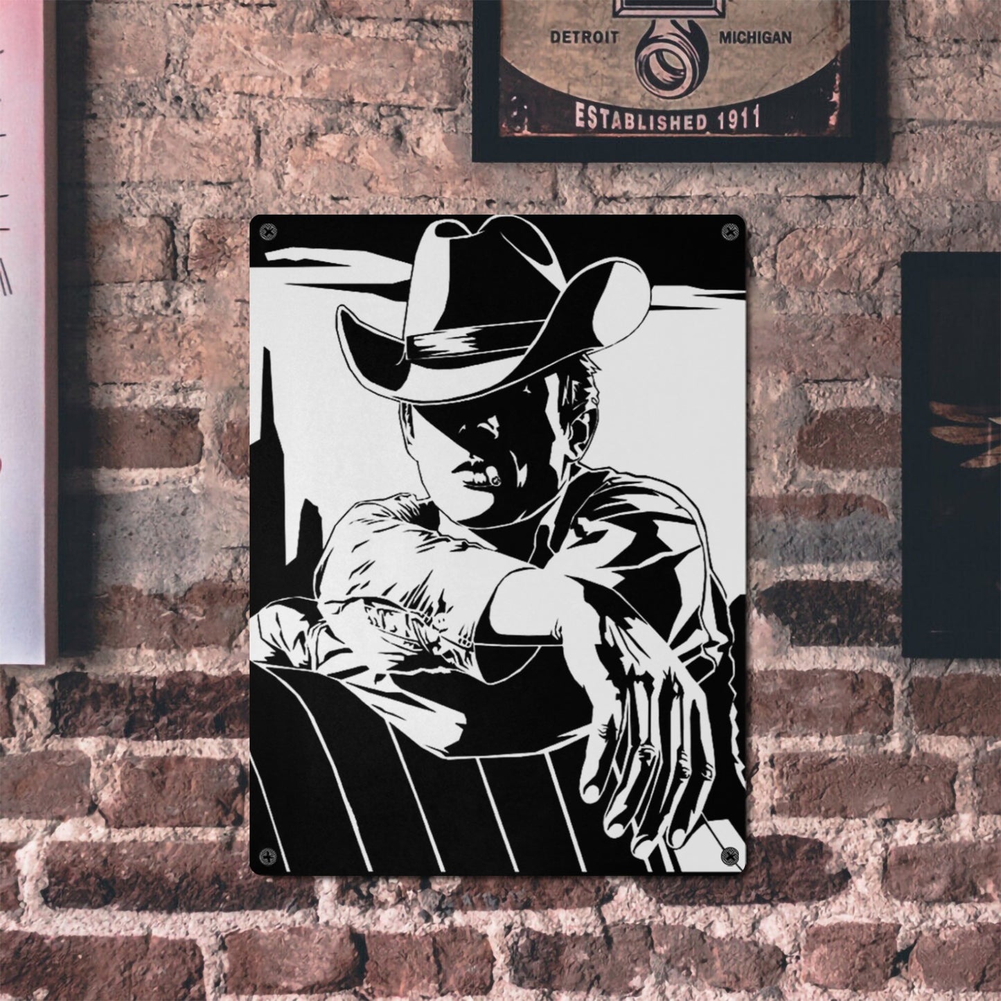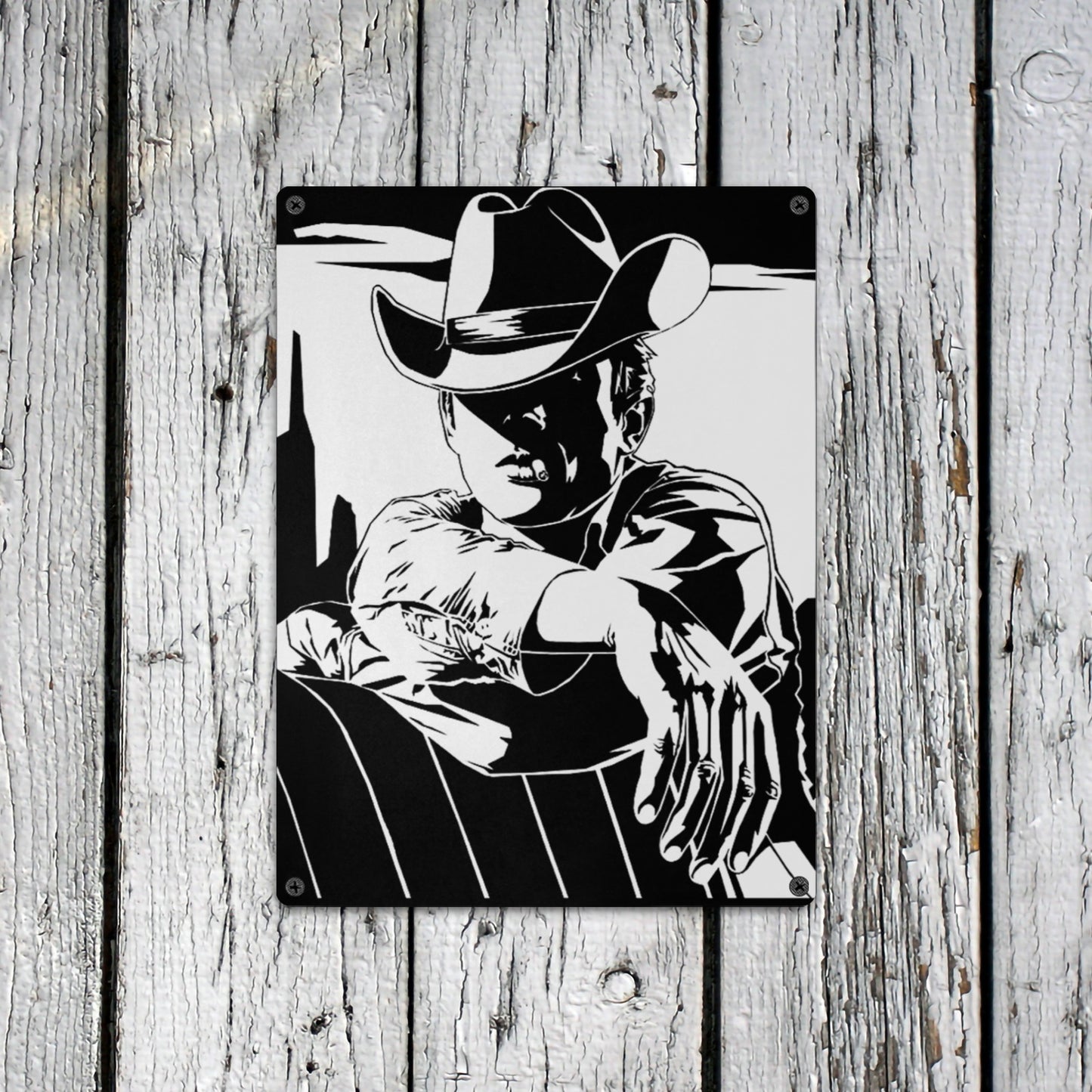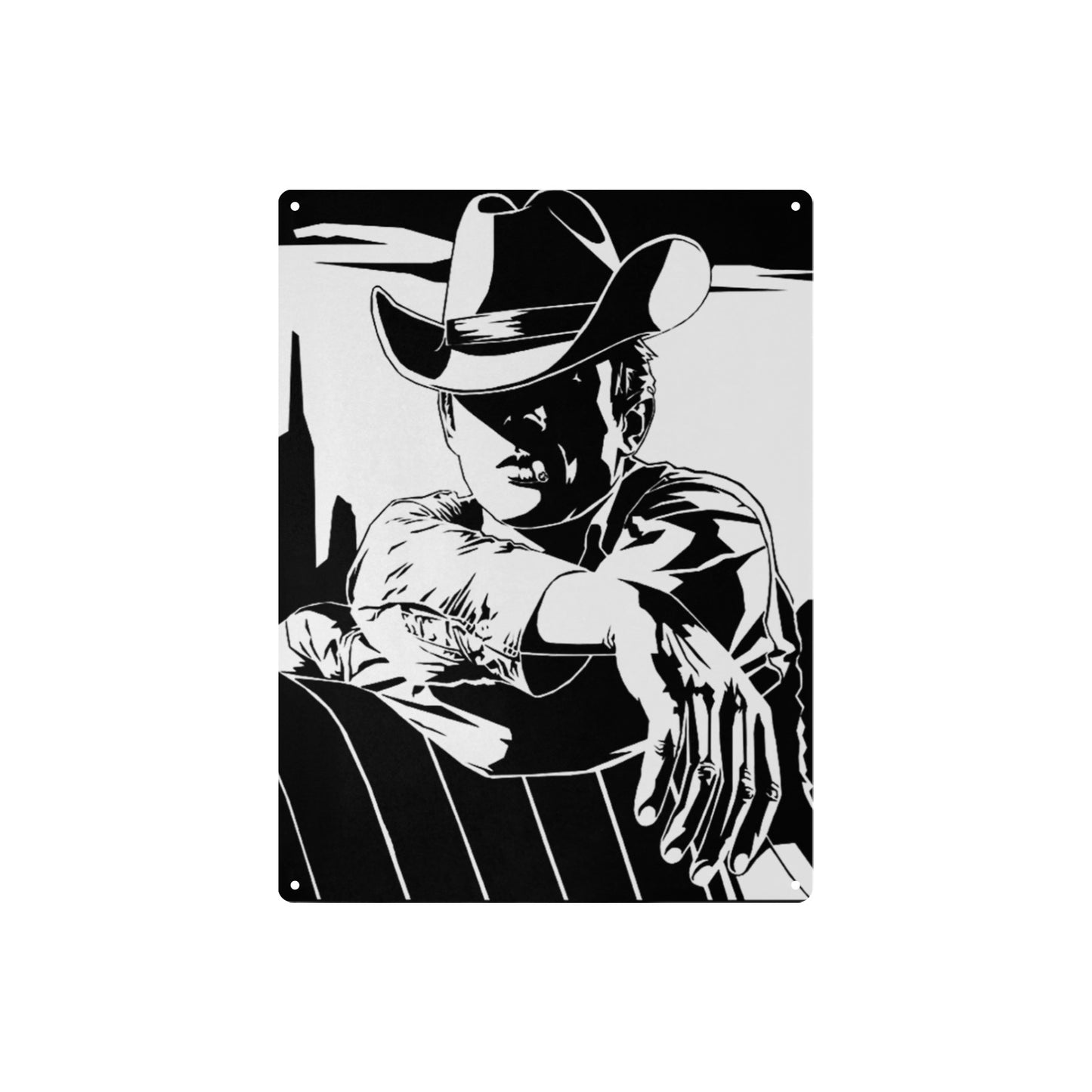 Black White Cowboy Metal Sign Metal Sign 12"x16" (Made in USA)