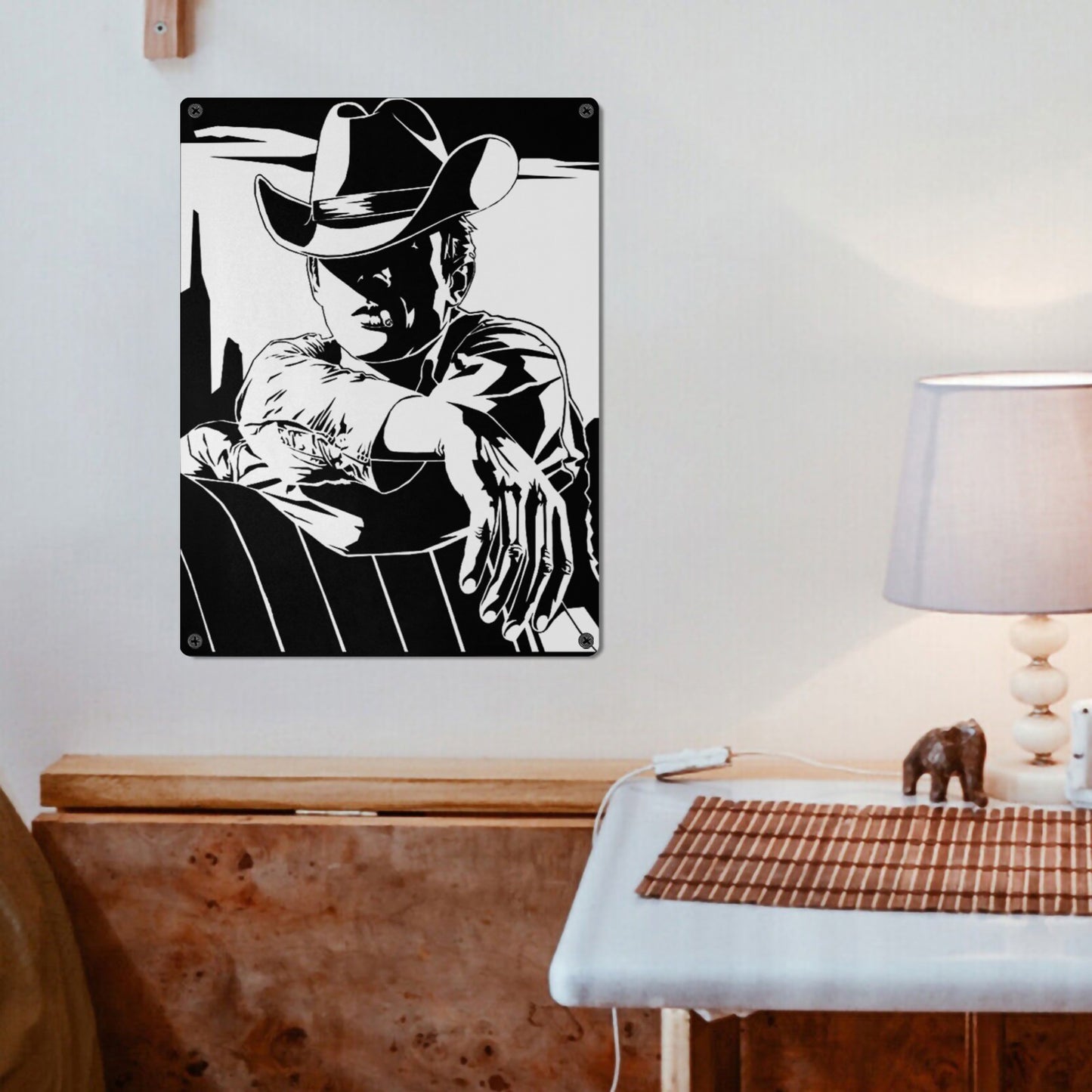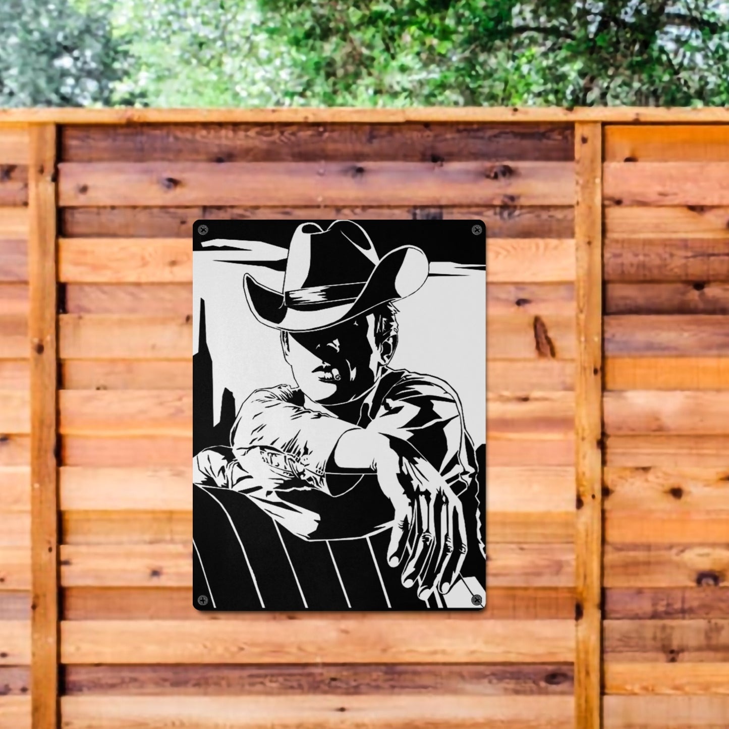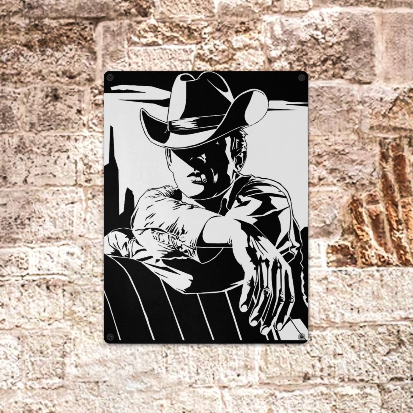 Black White Cowboy Metal Sign Metal Sign 12"x16" (Made in USA)