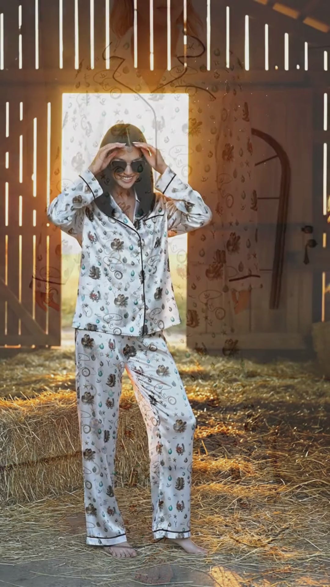 Boots and Brands Western Christmas Long Satin Pajamas