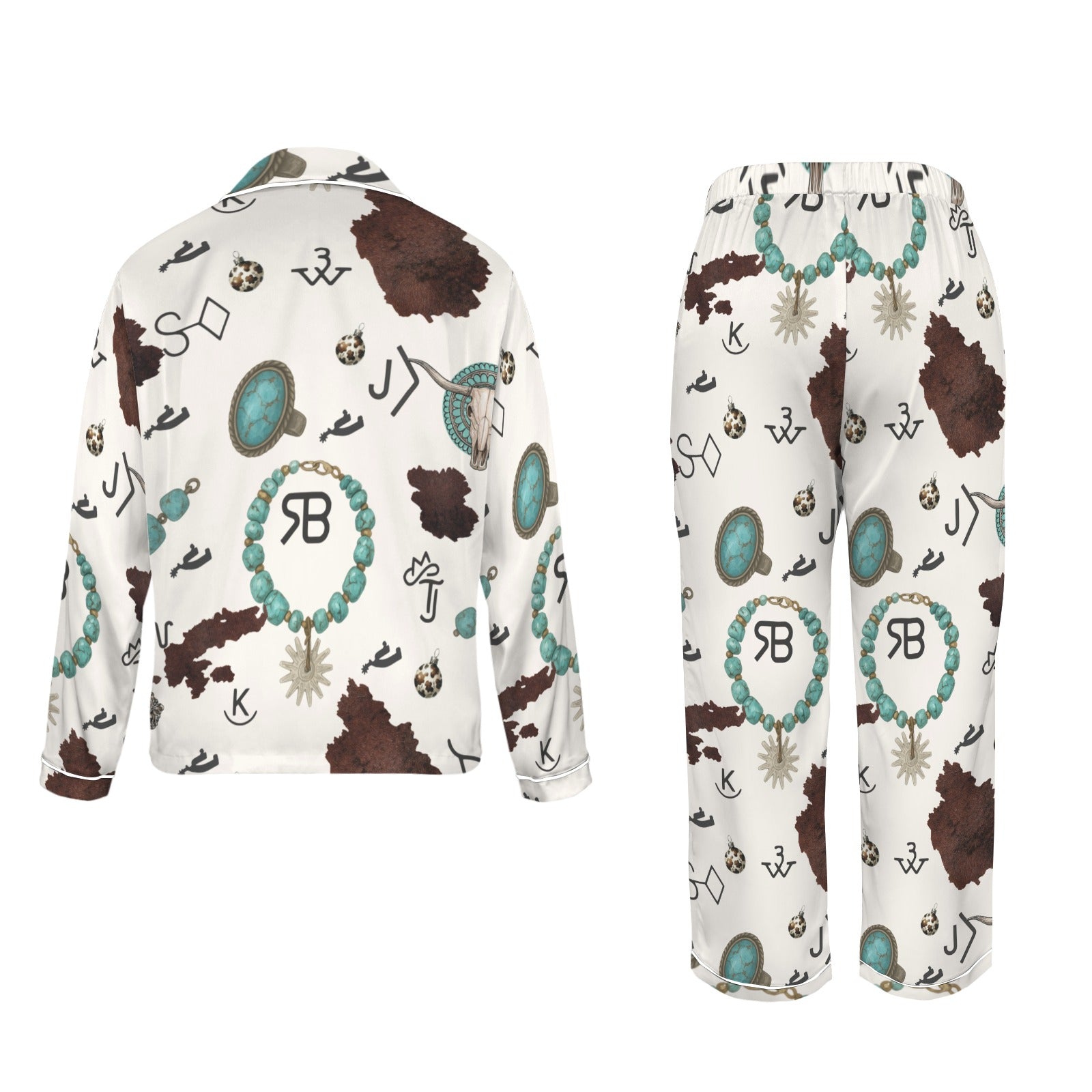Brands & Turquoise Cowgirl Christmas Western Cowprint Satin Pajamas