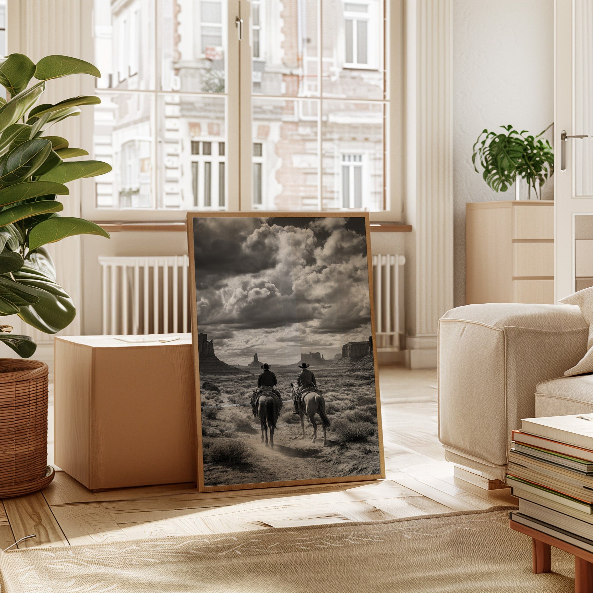 Perfect for celebrating friendship in living rooms, inspiring adventure in home offices, or adding epic western character to any space that honors the values of loyalty, exploration, and shared dreams. This piece speaks to lovers of western heritage, adventure seekers, and anyone who believes that life's greatest treasures are found not in destinations, but in the people who ride alongside us.