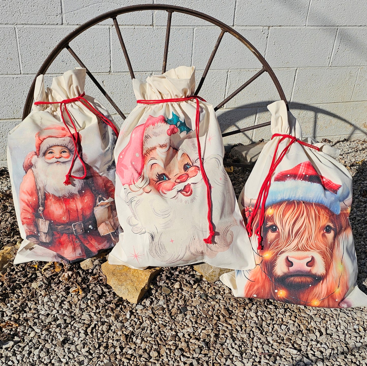 Perfect addition to your holiday gift-giving. These sacks are not only a great gift in themselves, but they also serve as a keepsake for years to come. Made from high-quality fabric, each sack features the same design that adds an extra touch of holiday cheer. Fill them with gifts or use them as decoration,