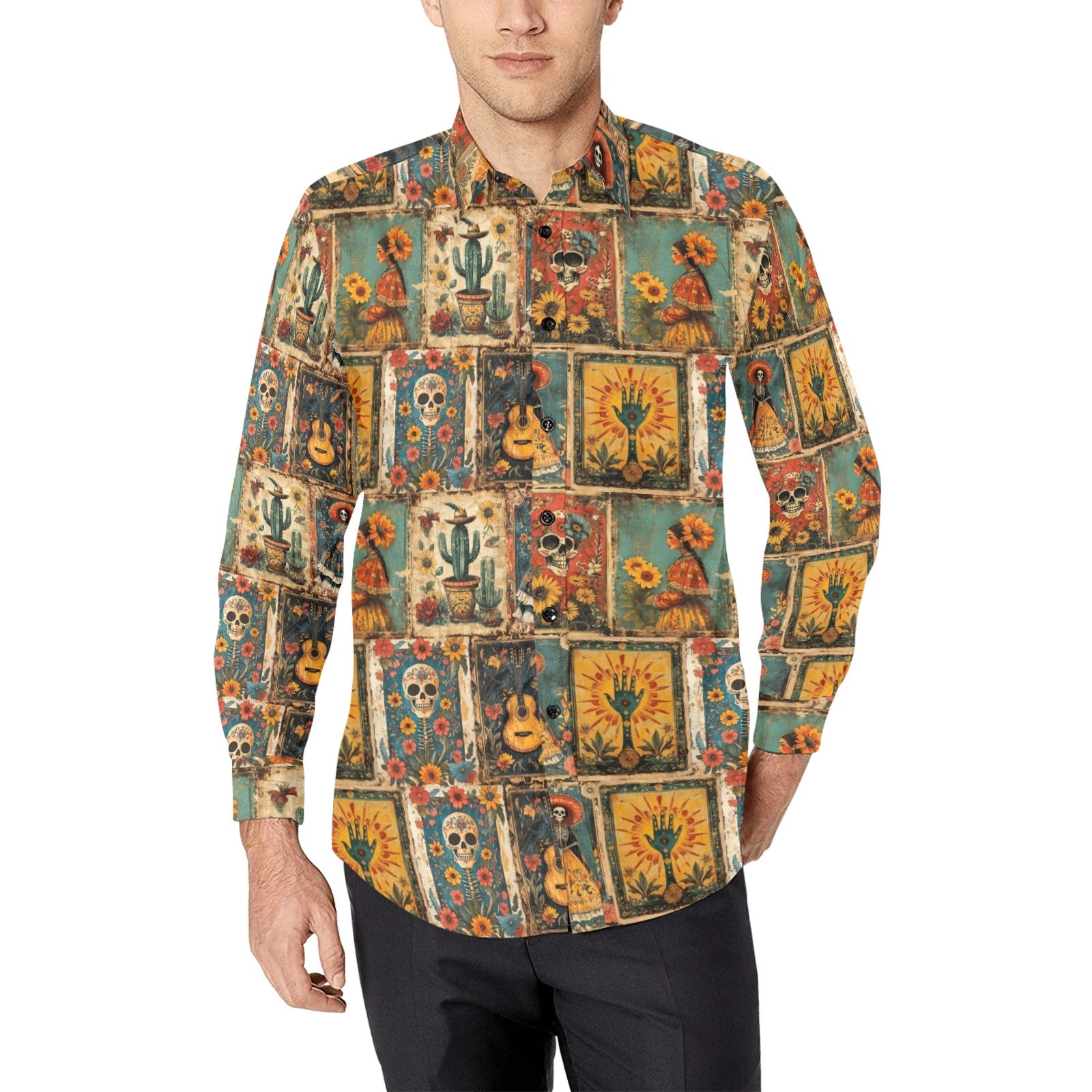 Colores de Mexico Dia de Los Muertes Button Up Shirt