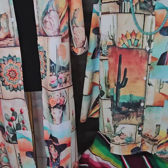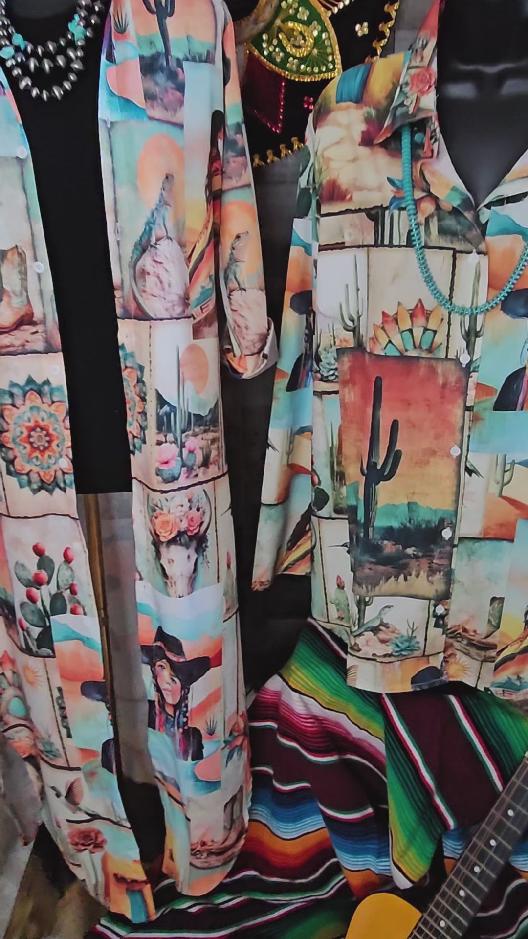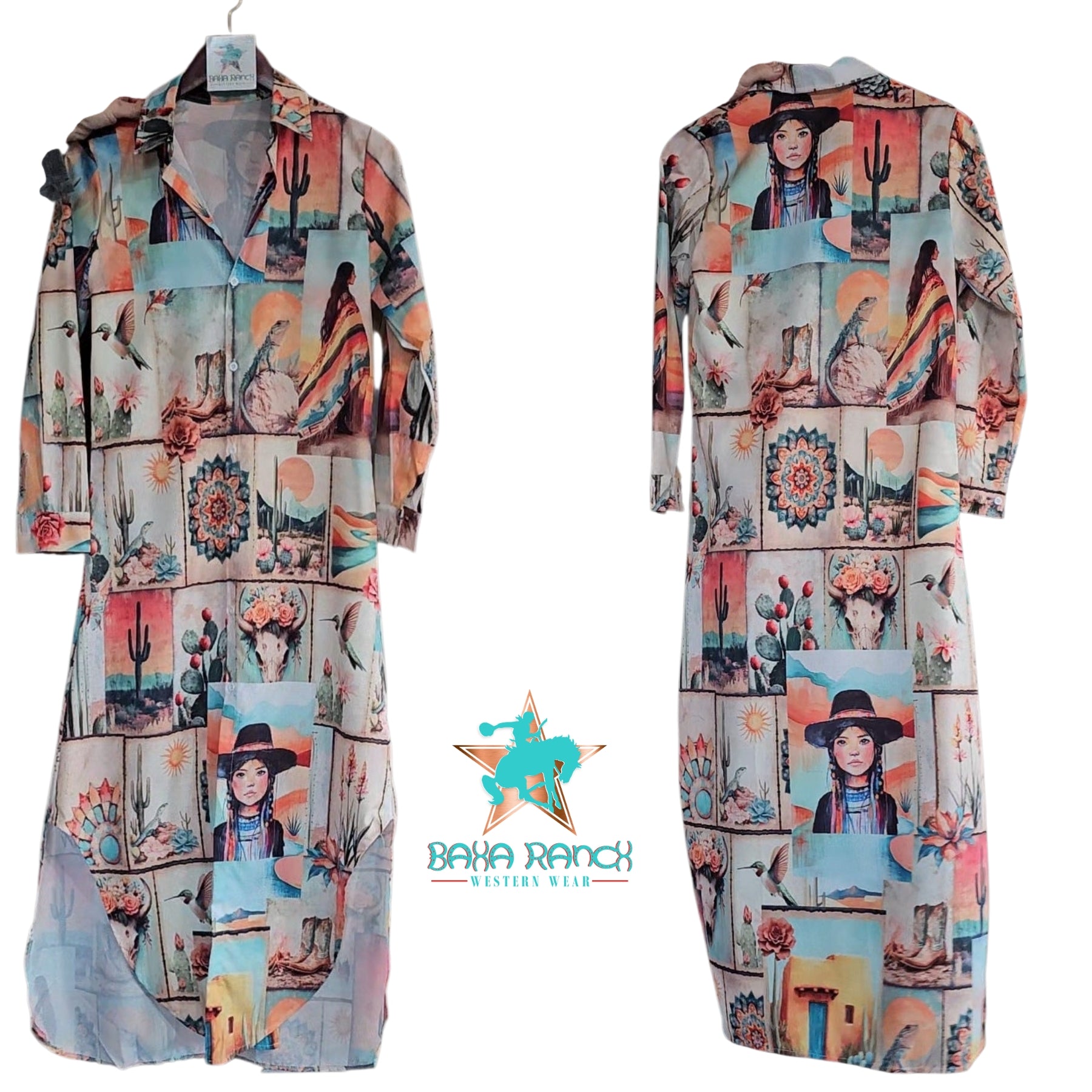 Colores de Mexico Pictures of the Southwest Button-Up Long Sleeve Shirt Dress Duster
