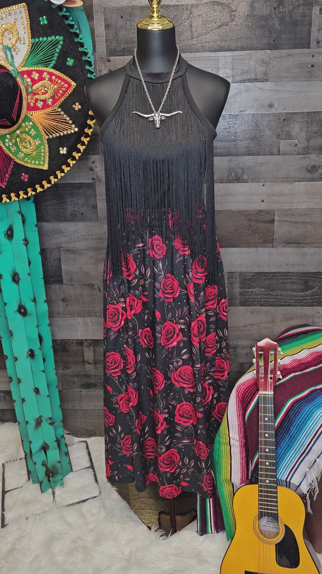 Colores de Mexico Romantic Red Roses Midi Skirt