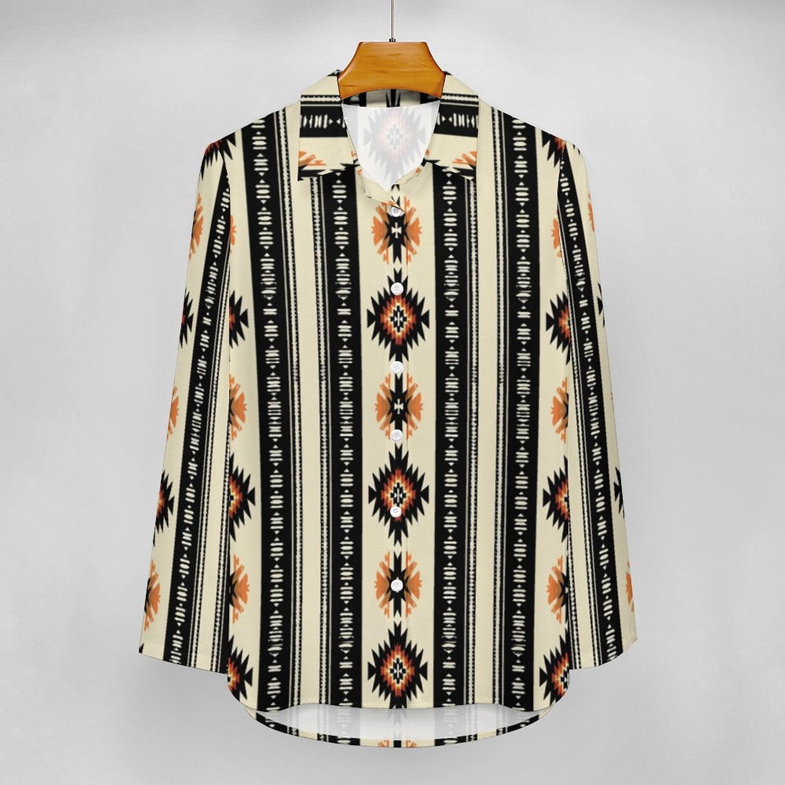 With a variety of vibrant prints for all occasions, your closet will be complete with this lightweight button up blouse.