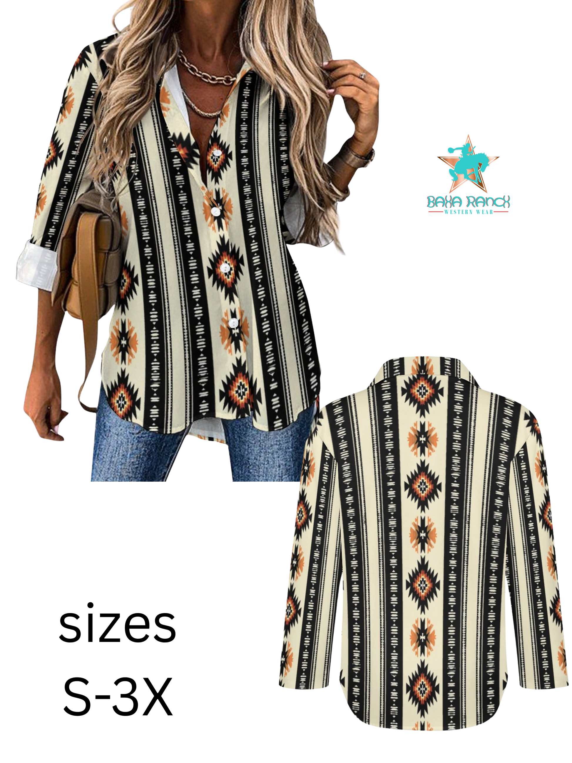 Colores de Mexico Southwestern Aztec Button Up Shirt
