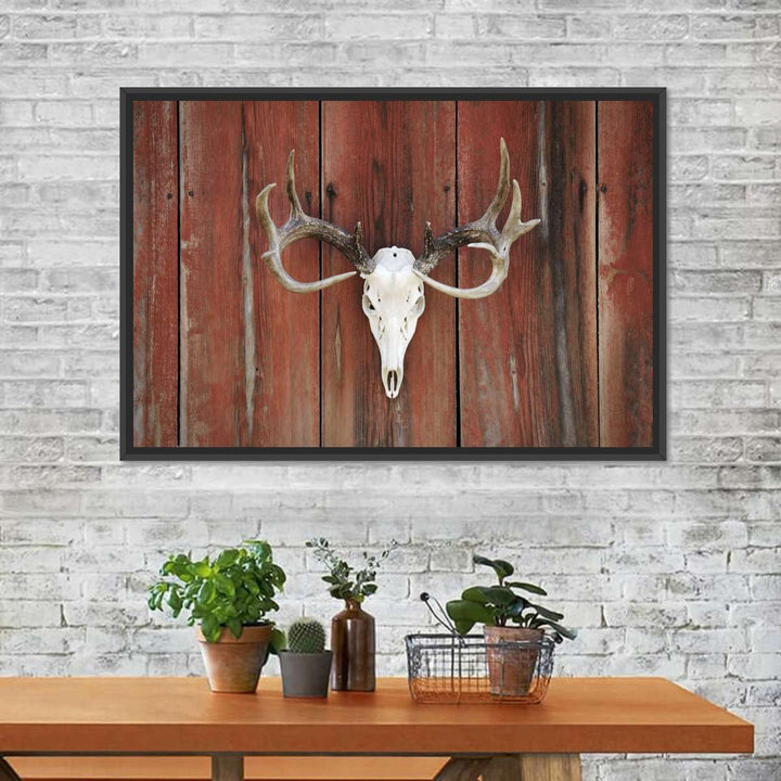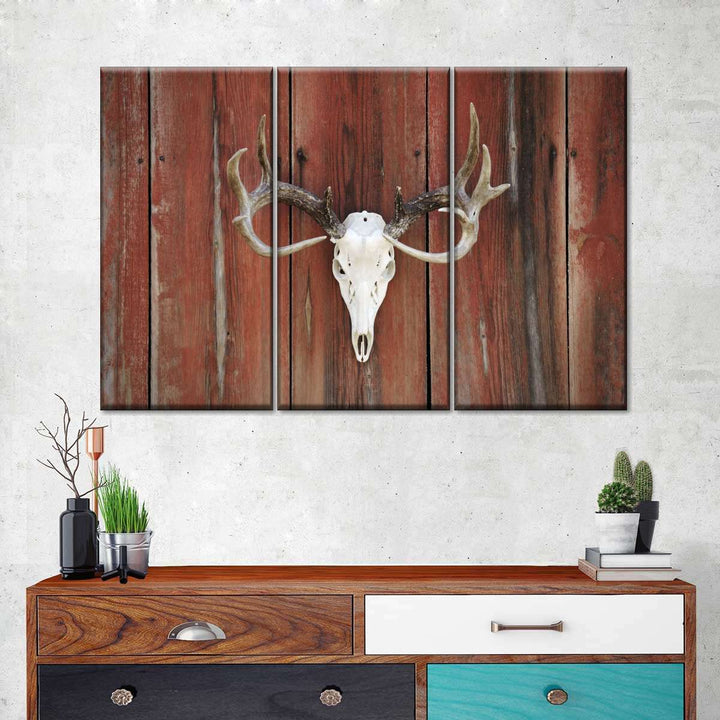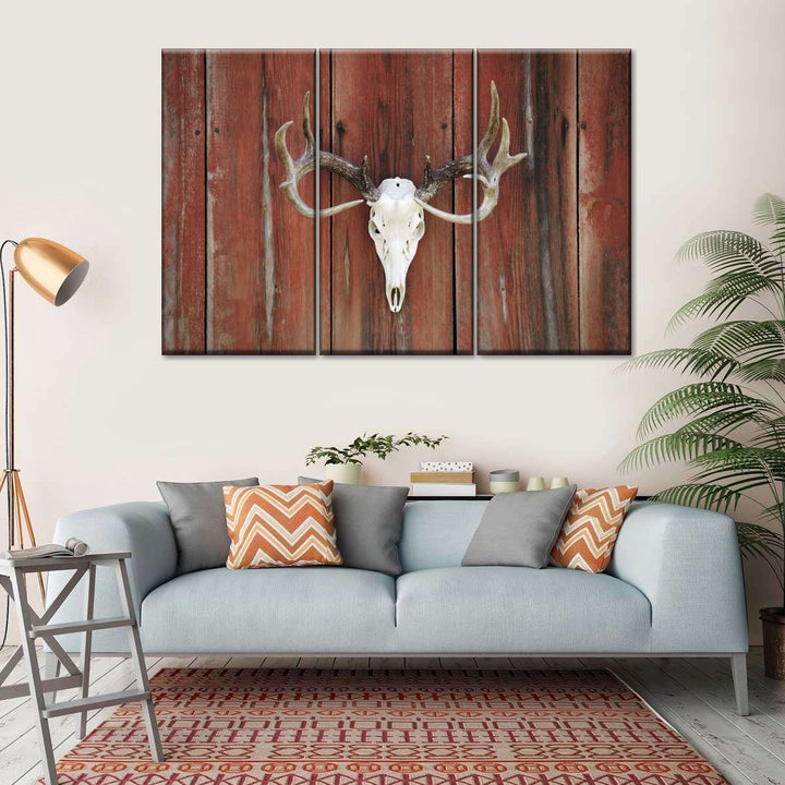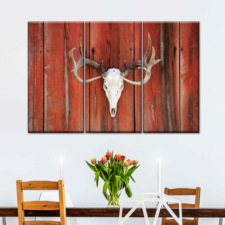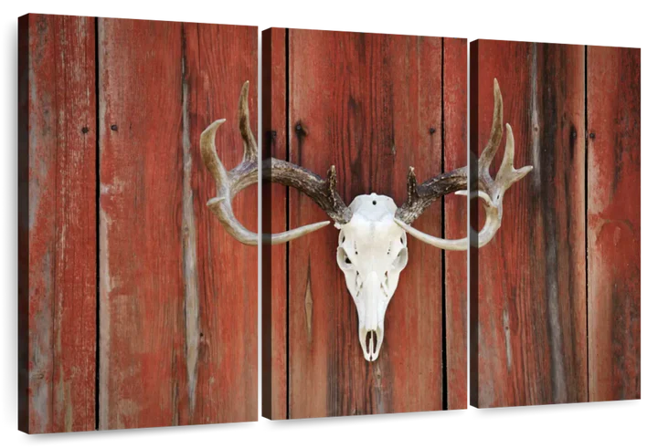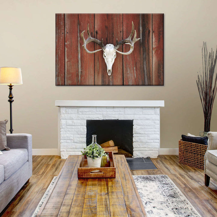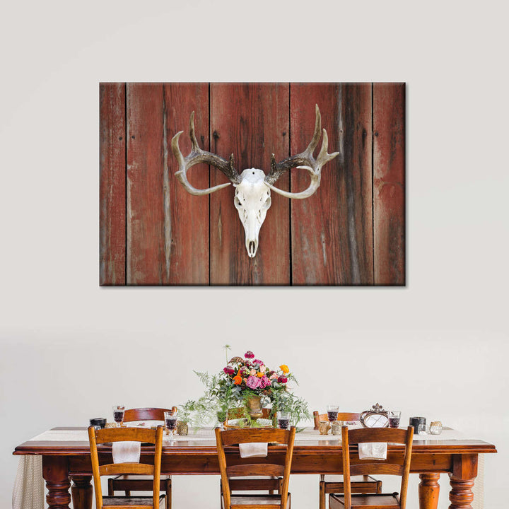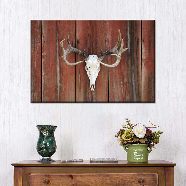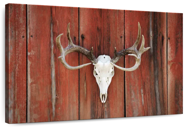 Deer Skull Mount adds a gothic touch to your decor. Connect to the dark side and make a bold statement in your home with this eye-catching skull canvas print.