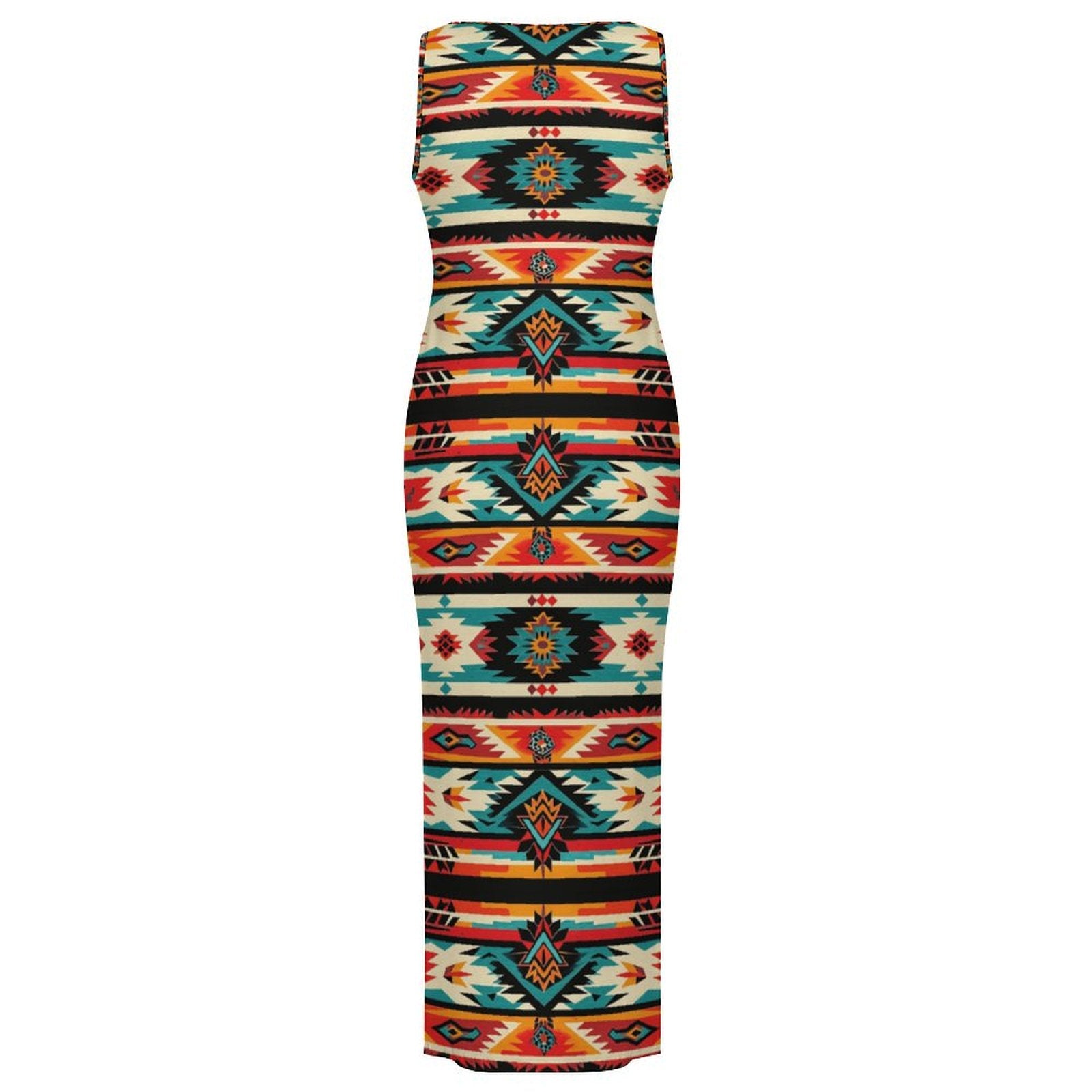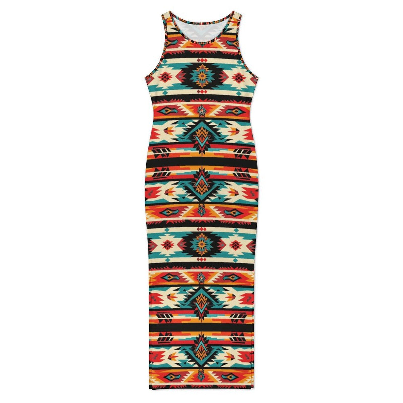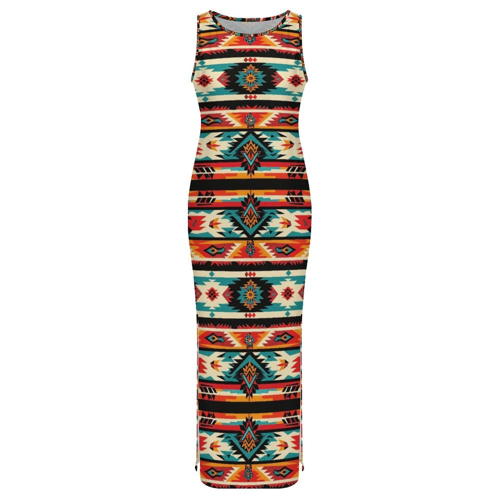 Santa Fe Sleeveless Bodycon Side Slit Western Maxi Long Dress