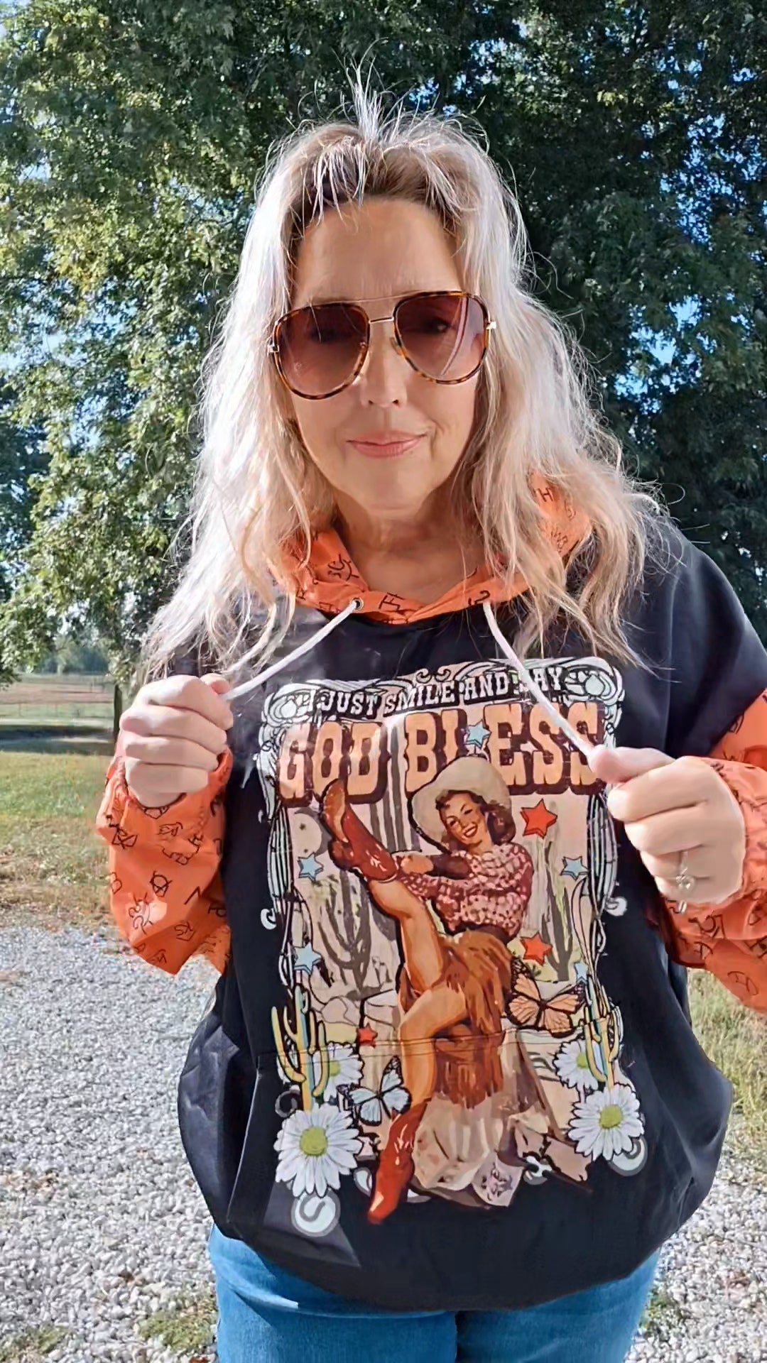 Lightweight tech style hoodie with the coolest western graphic! Show your cowgirl attitude with this fun design!